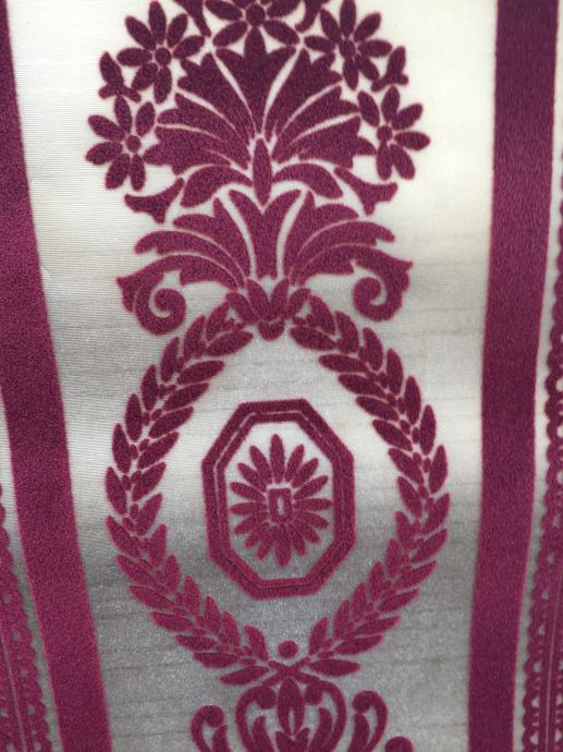 Jedna vrsta je sa crvenim ( bordo ) dizajnom i zlatnom podlogom. Bordo uzorak je kao strukture samta ( pliša ).