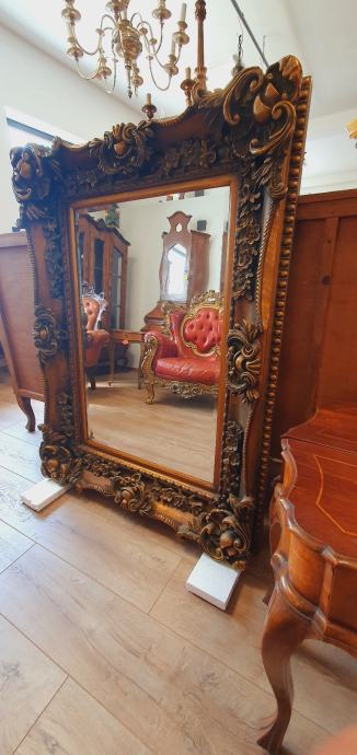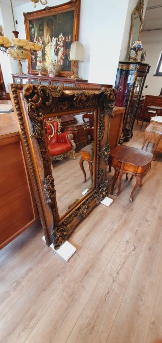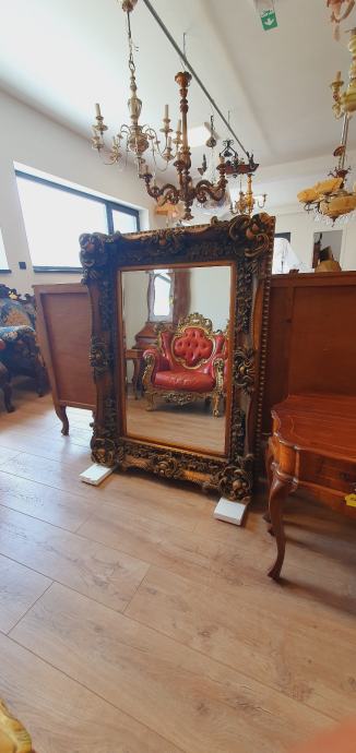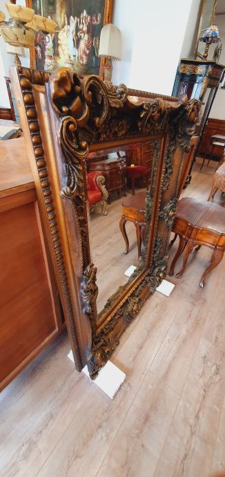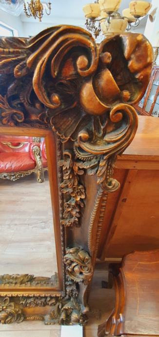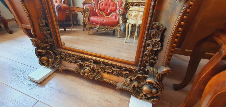 Zlatno ogledalo, stari rad u drvetu, ručni rad, bojano tehnikom zlatnih listića.