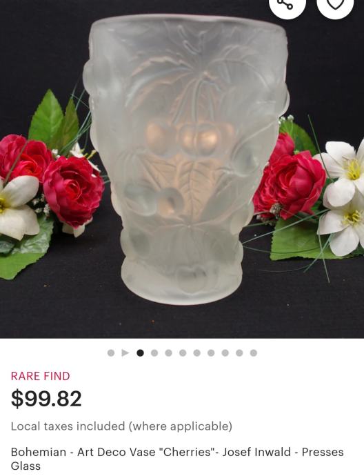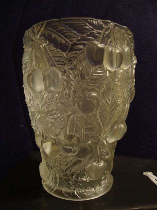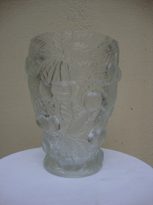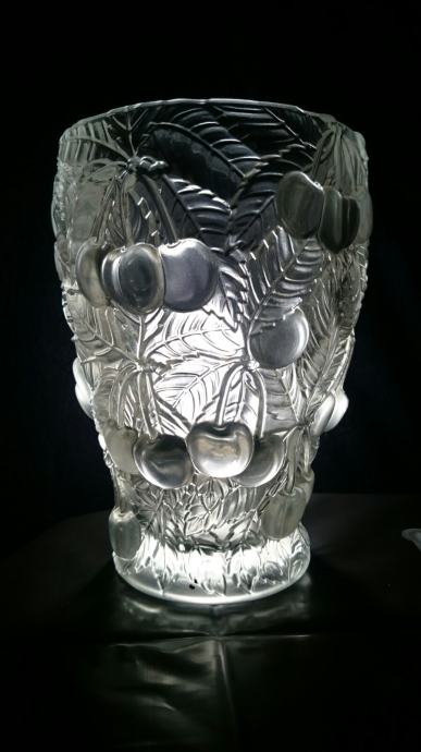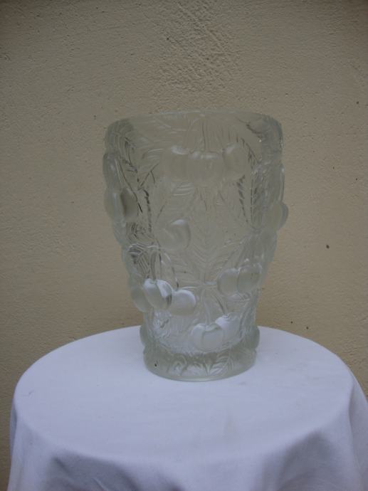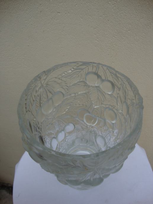 Predivna Josef Inwald ,art deco vaza iz 1930.godine od mutnog stakla reljefno izrađene trešnje u odličnom stanju