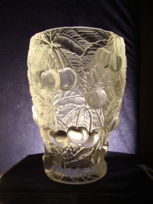 Barolac frosted glass vase CHERRIES,Josef Inwald vaza mutnog stakla