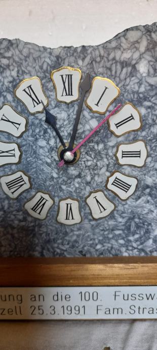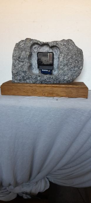 Novi baterijski sat u kamenom postolju sa drvenom podlogom