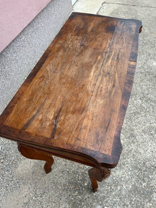 Bidermajer kartaska konzola iz vremena, furnirana orahovim furnirom.