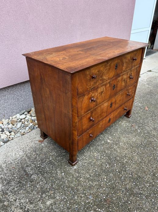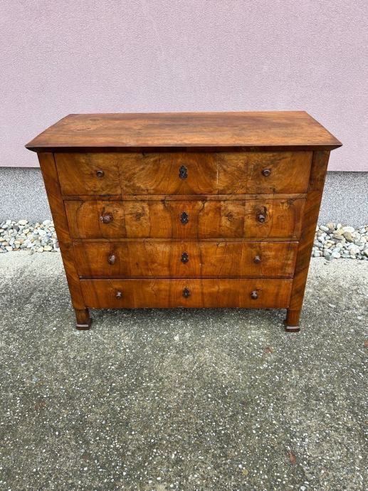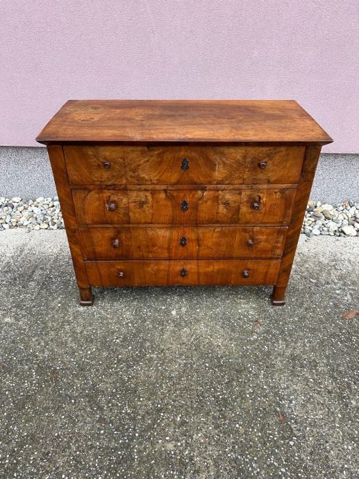 Bidermajer komoda napravljena u prvoj polovici 19stoljeca furnirana krasnim orahovim furnirom.