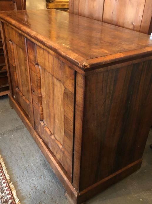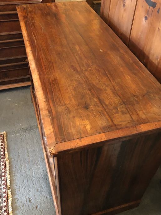 Komoda je furnirana krasnim, debelim furnirom orahovog drva.