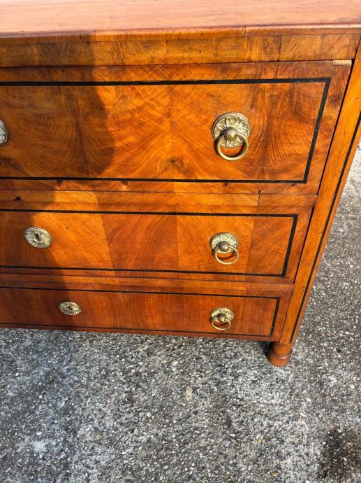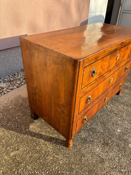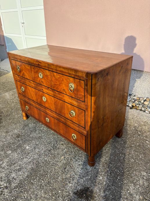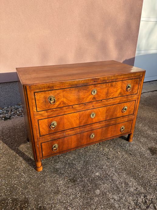 Bidermajer komoda sa ladicama u dobrom stanju. Komoda je napravljena u prvoj polovici 19. St i furnirana krasnim orahovim furnirom te ima originalne ruckice.