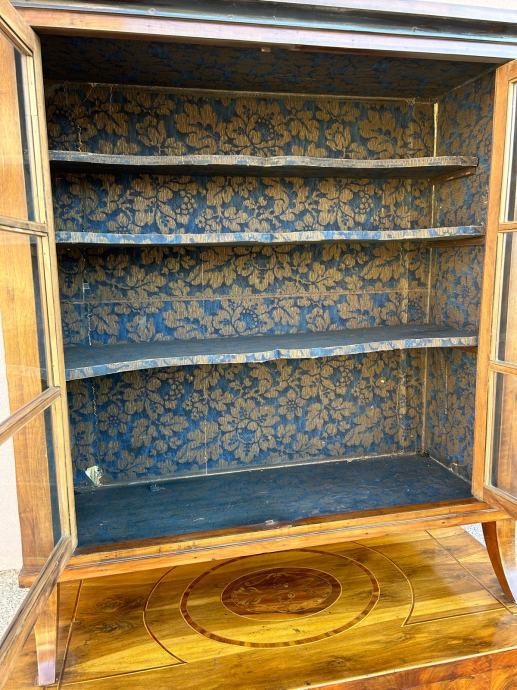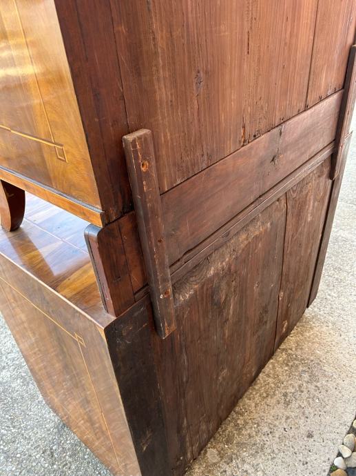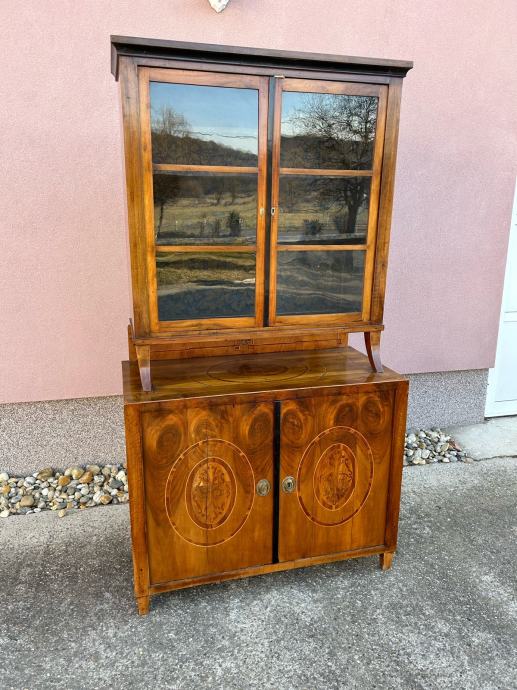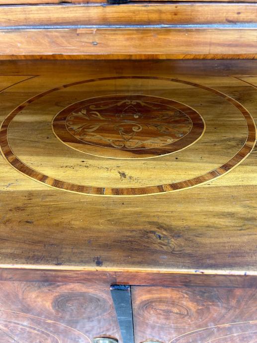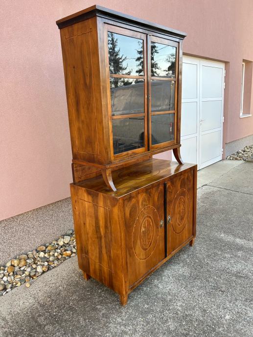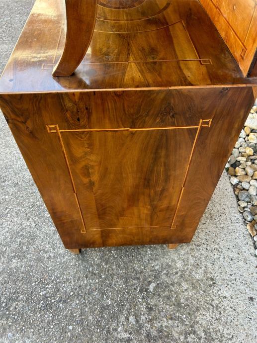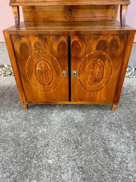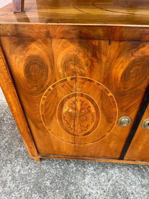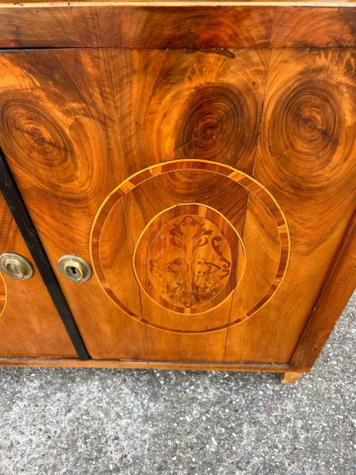 Bidermajer kredenac u dobrom stanju, furniran orahovim furnirom i intarziran.