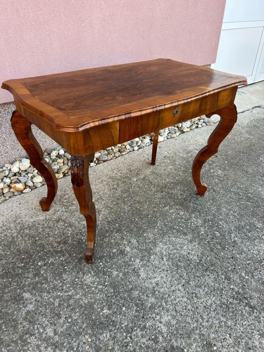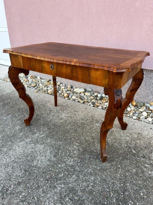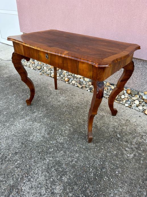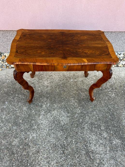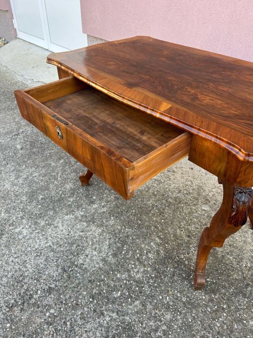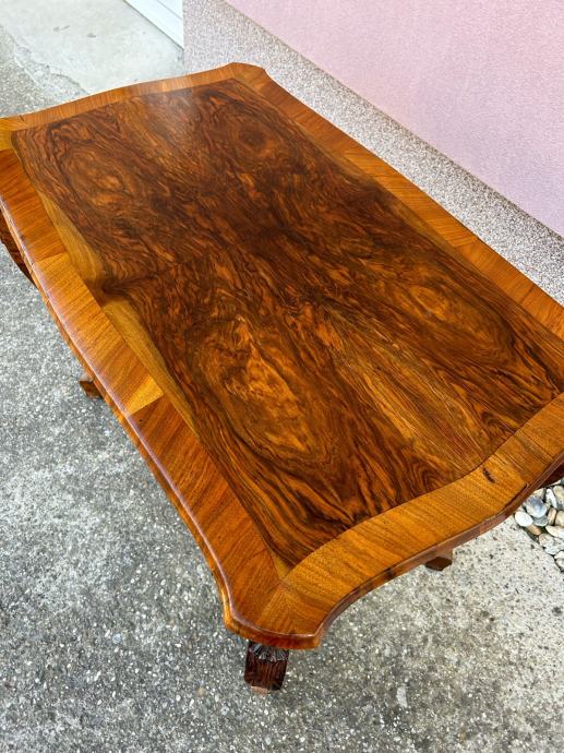 Stol je iz vremena i furniran je krasnim orahovim furnirom.