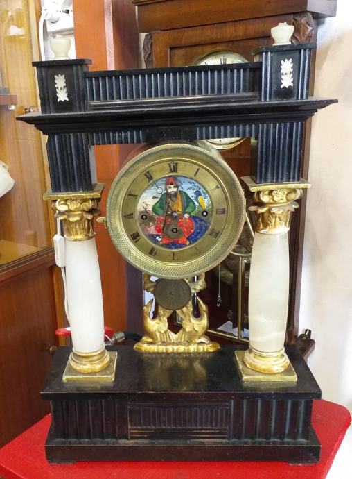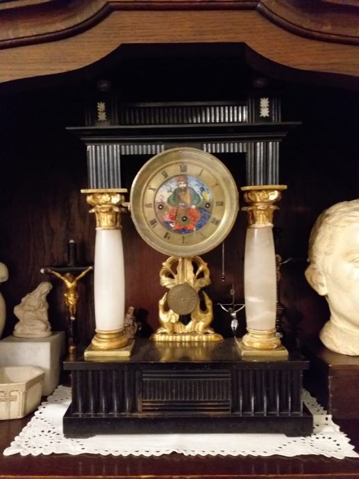 Prodaje se Bidermajer sat. Mehanizam ispravan, sa zvonima za označavanje sata i kvartala. Glava gusara na ciferblatu se pomiče kao oznaka za sekunde. Sat je restauriran. Mehanizam ispravan i servisiran.