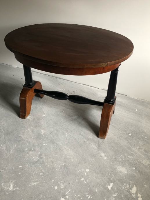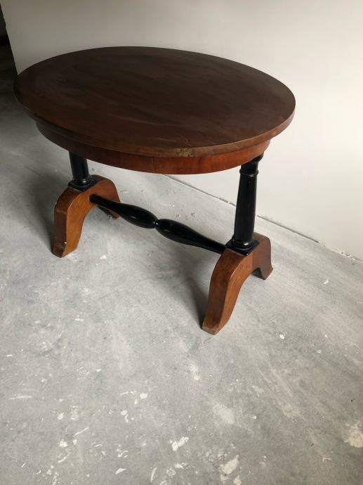 Bidermajer ovalni stolic u vrlo dobrom stanju sa crnim tokarenim detaljima.