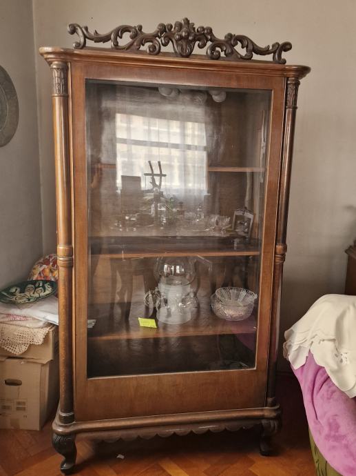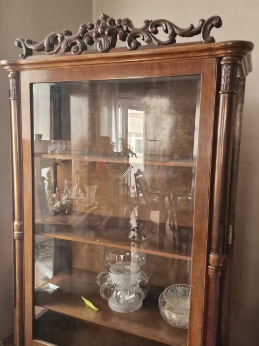 Prodajem bidermajer vitrinu/kristaljeru, s kristalnim staklom i drvenim, rucno radenim ornamentom.