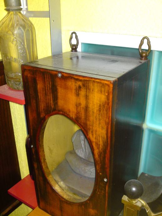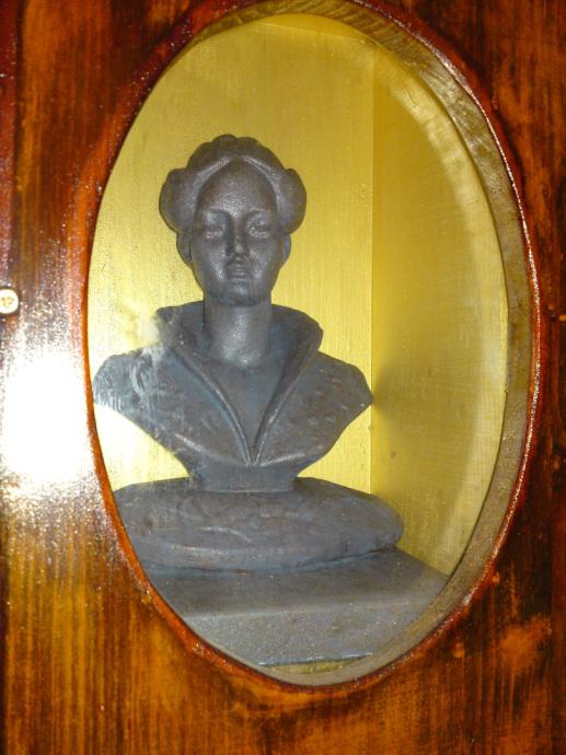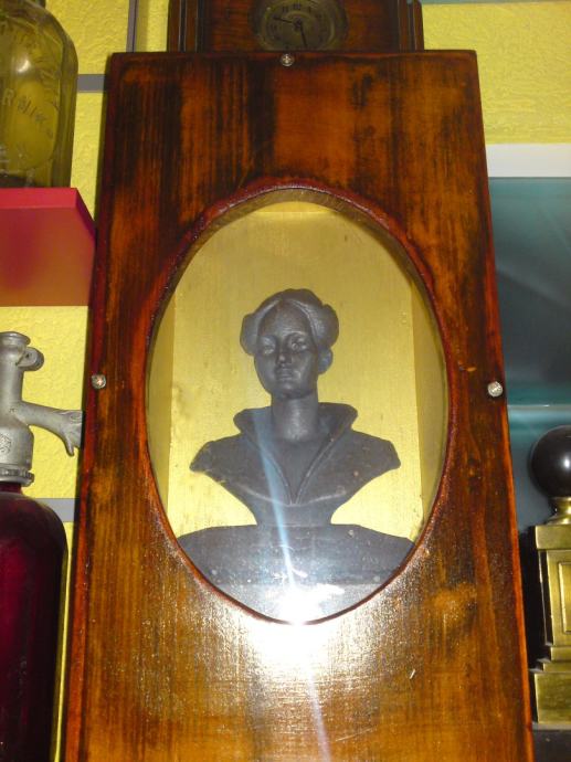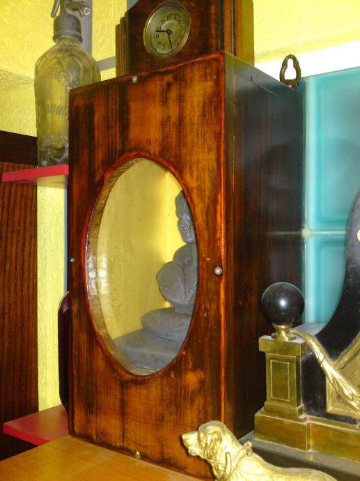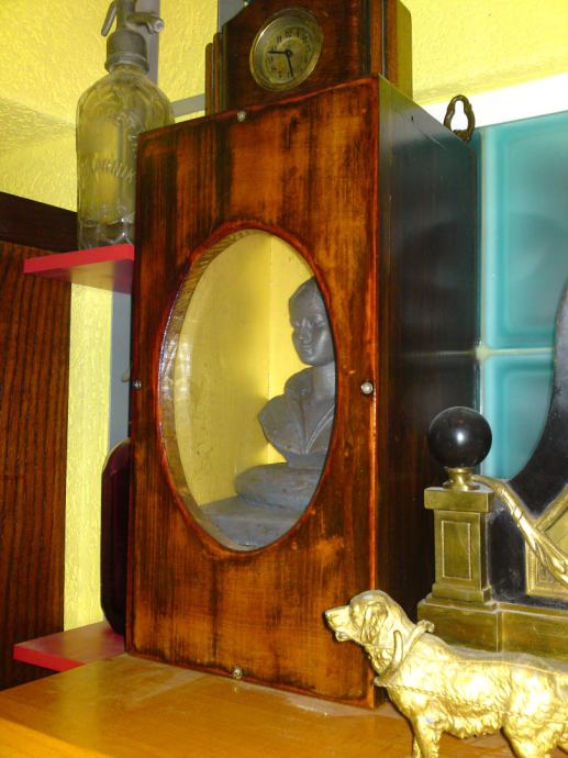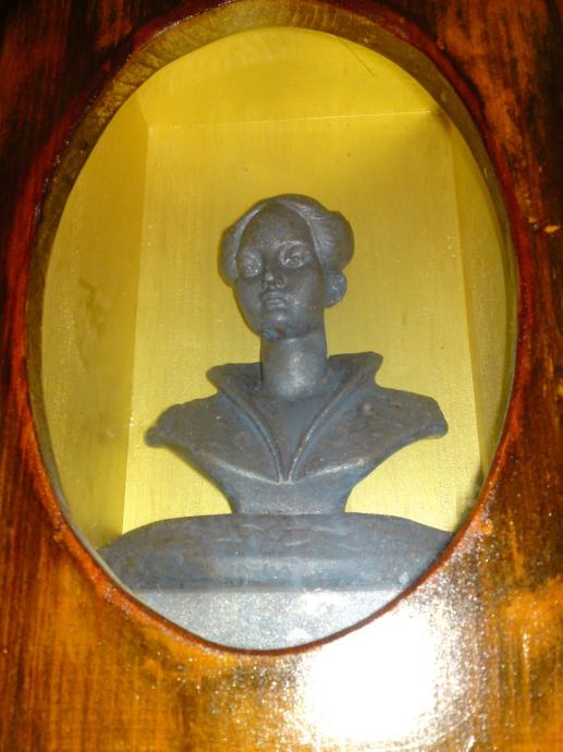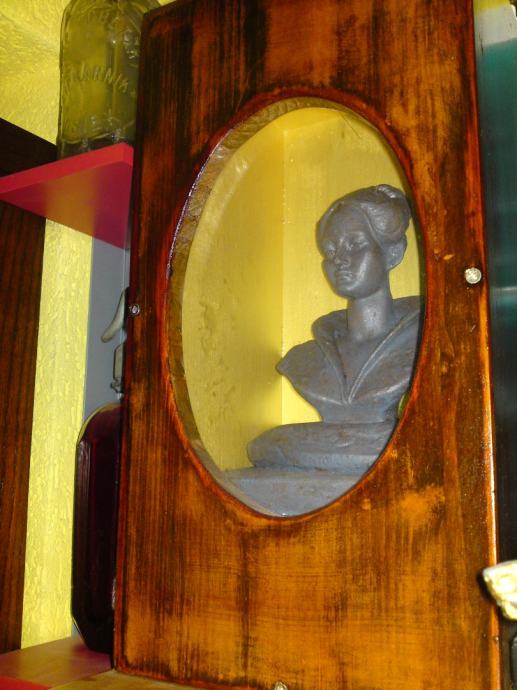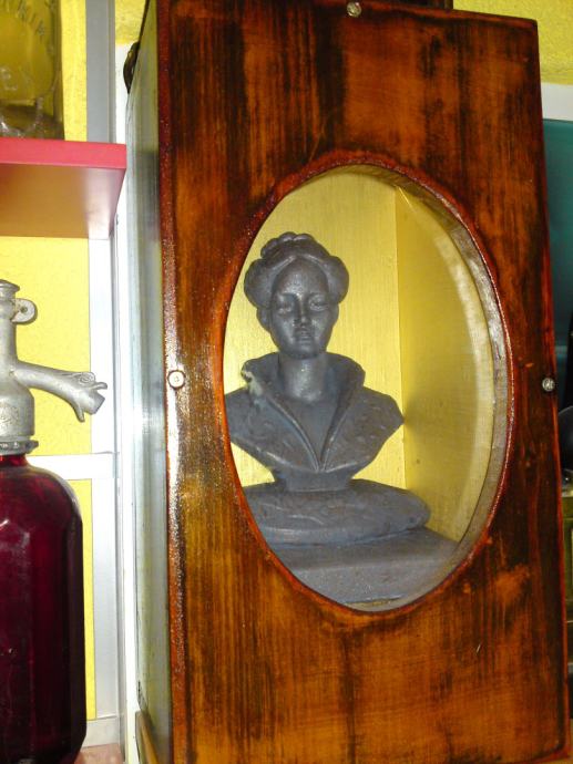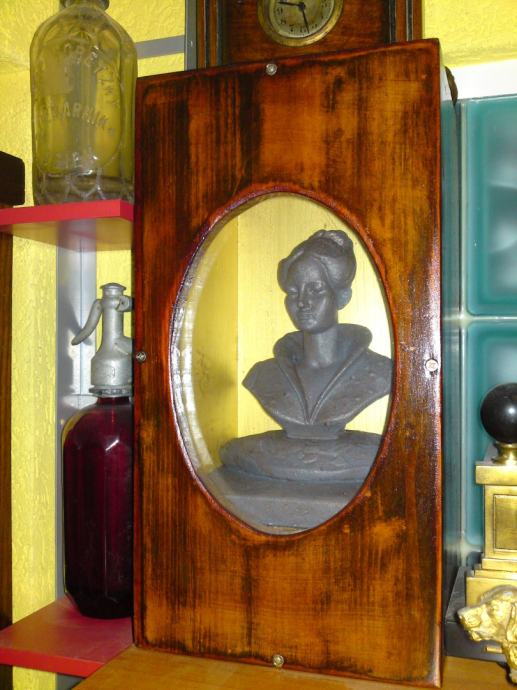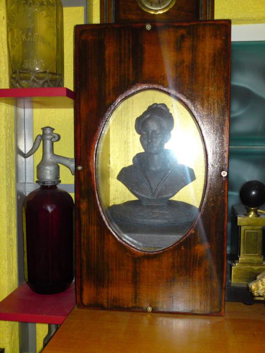 Stara bista neke grofice od neke vrste umjetnog kamena, u drvenoj restauriranoj drvenoj kutiji ( bajcovano, premazano šelakom).Dimenzije kutije: visina: 40,0 cm, širina: 21,0 cm, dubina: 18,0 cm; dimenzije figure: visina sa postoljem, cca. 23,0 cm.