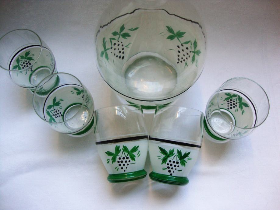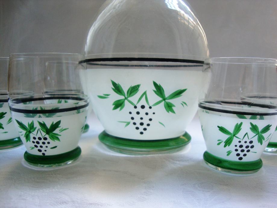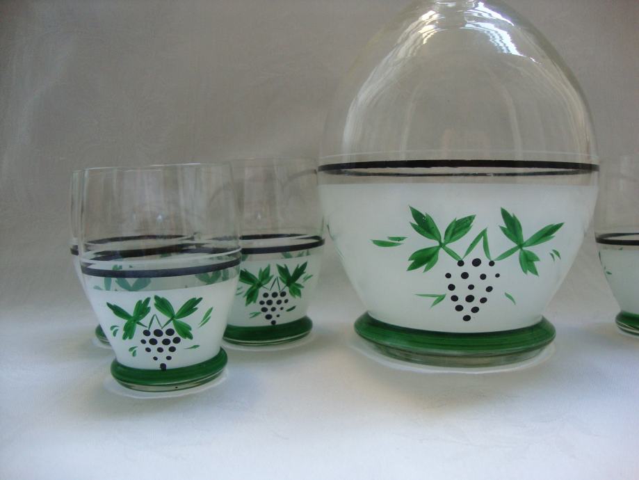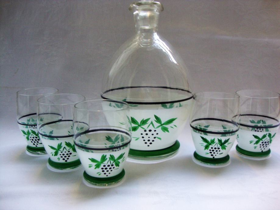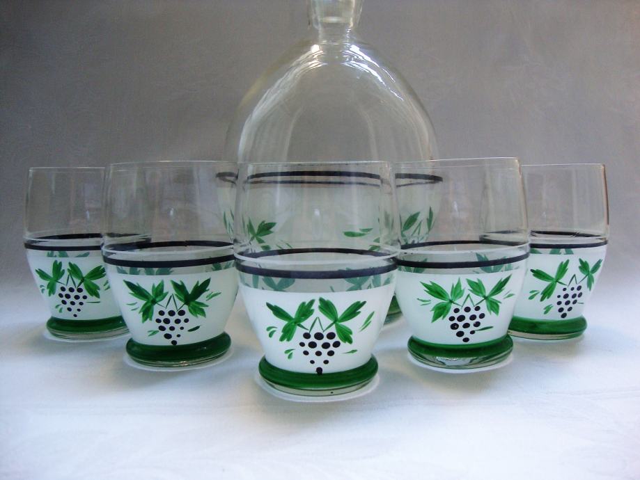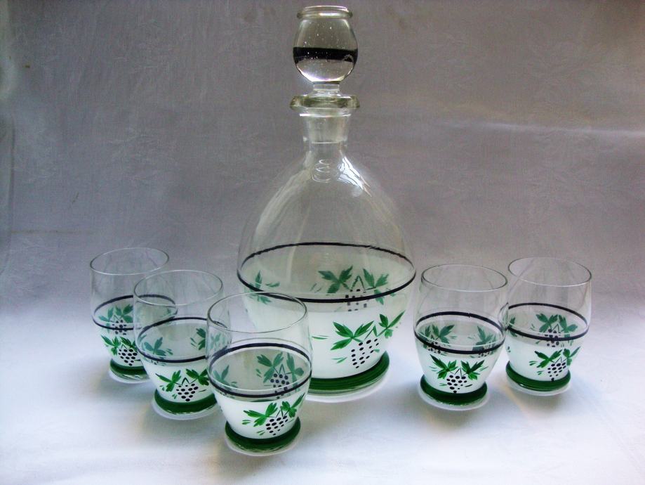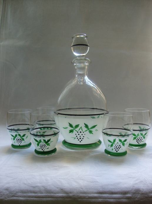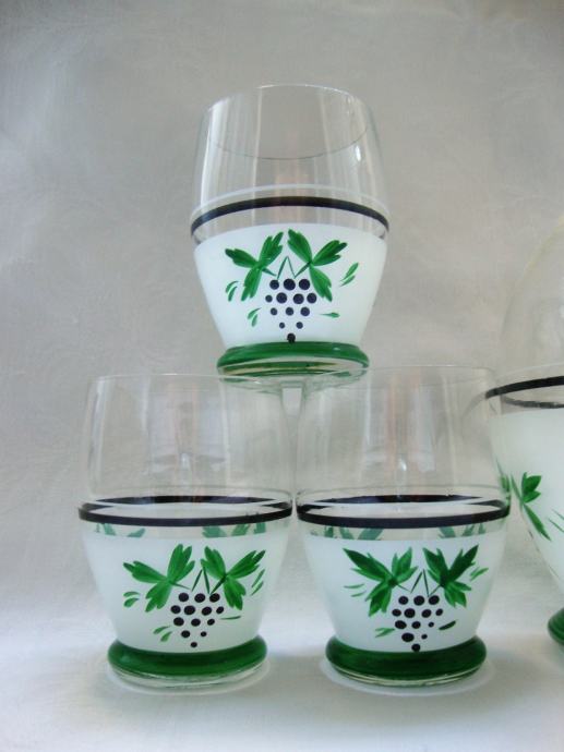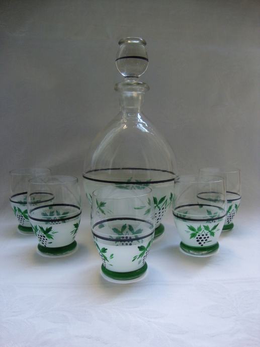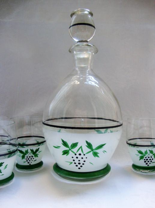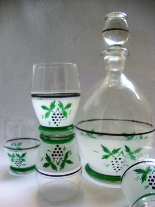 Krasan starinski set boca + 5 čašica ručno oslikano staklo