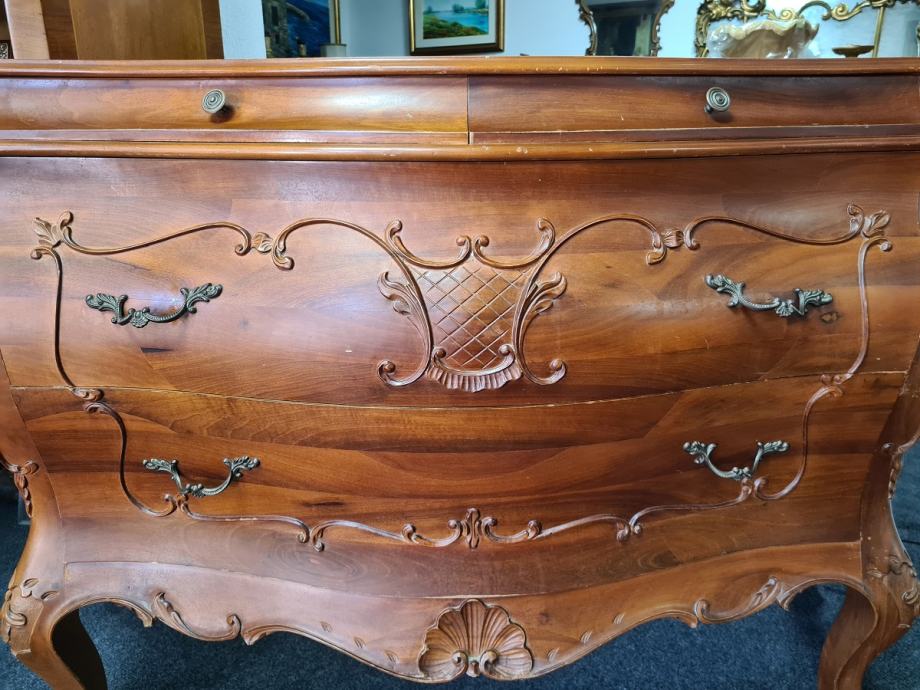 Bombirana rezbarena neobarokna komoda, odlično stanje.