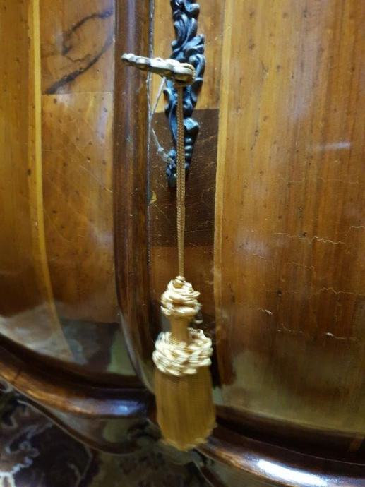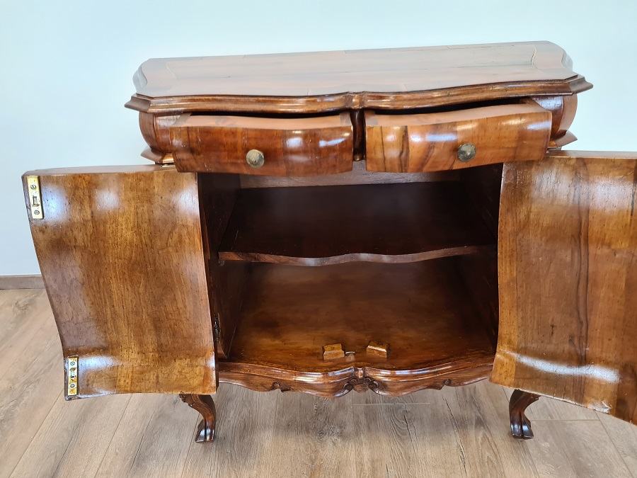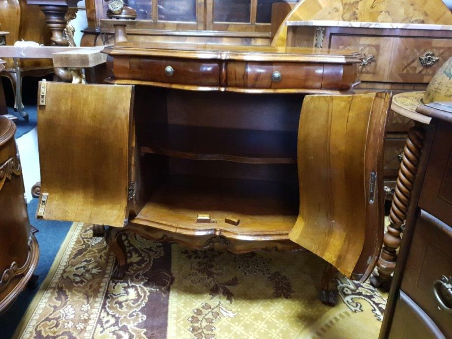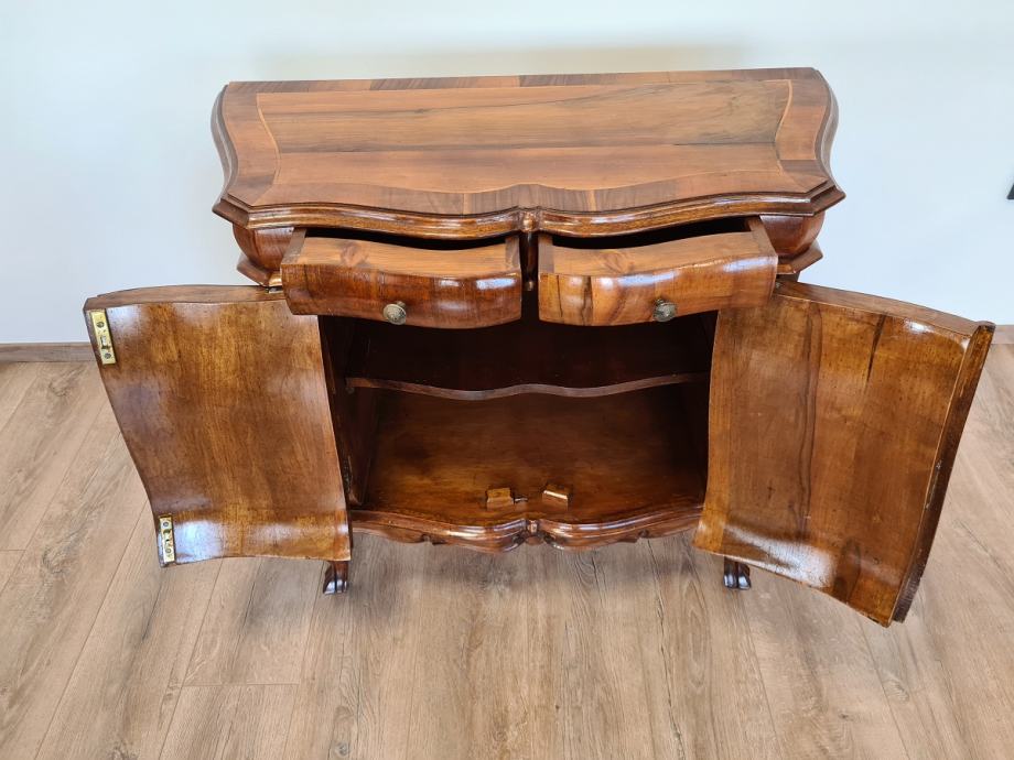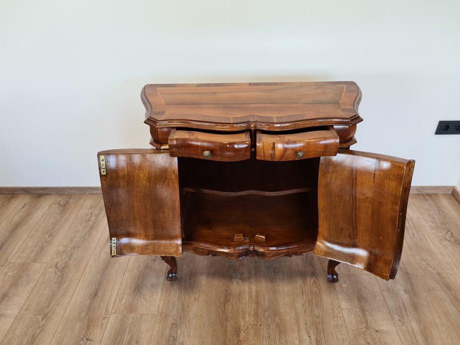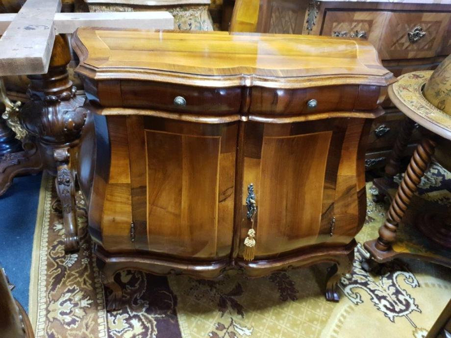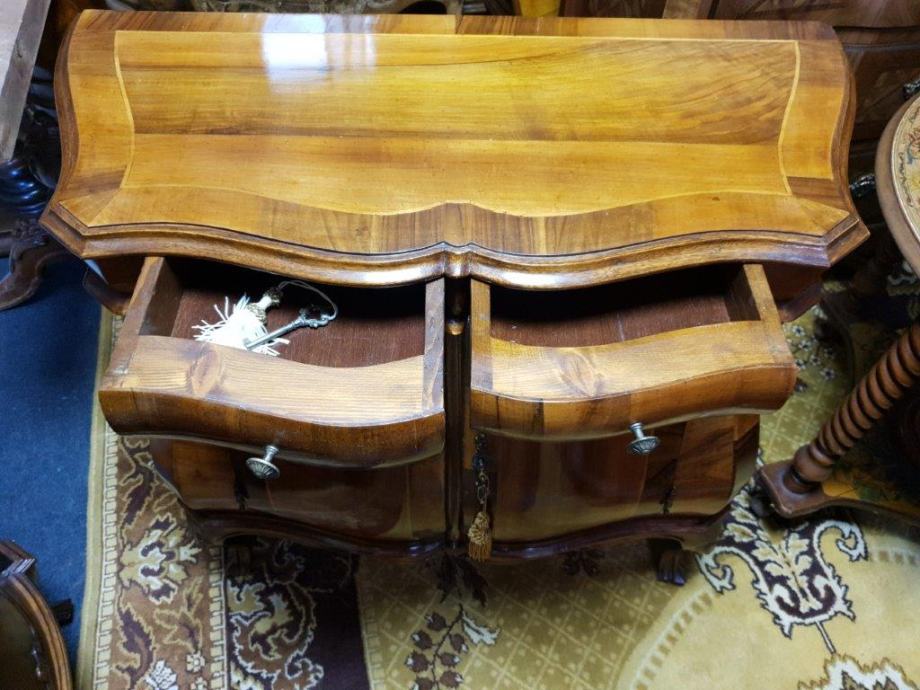 Bombirana masivna komoda, restaurirana, rađena od punog drveta, vidljivo sa slika.