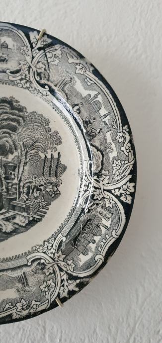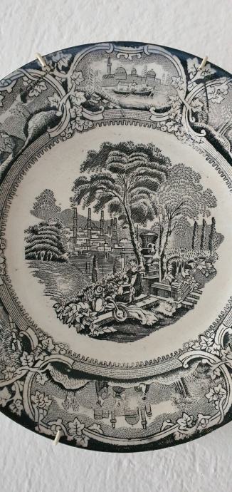 Krasan englesiki plitki tanjir sa motivom Bospforusa turskim rijedak u crnoj kombinaciji stanje savrseno bez ostečenja sa zihom krasan kolekcionarski primjerak