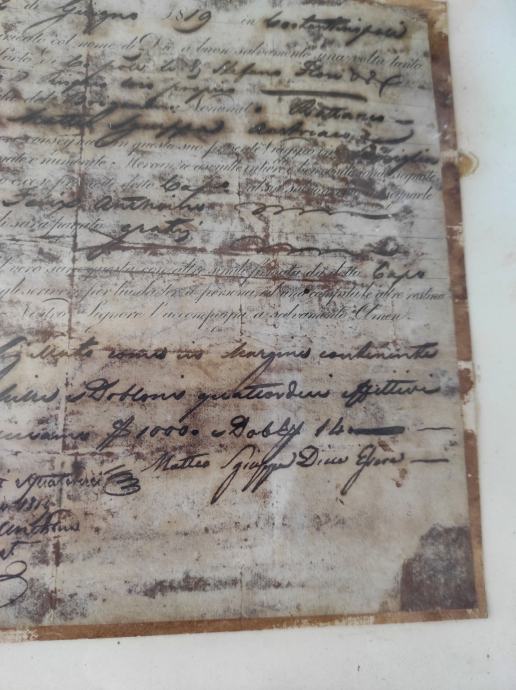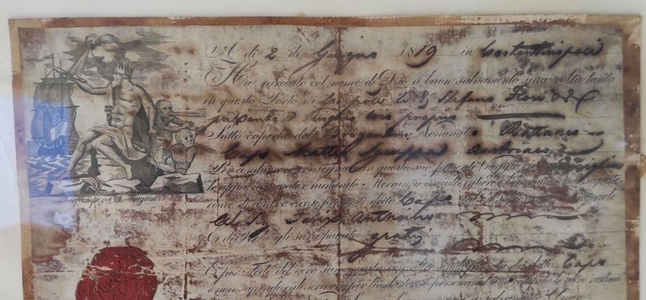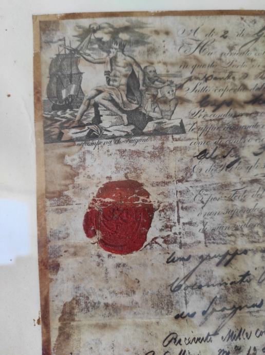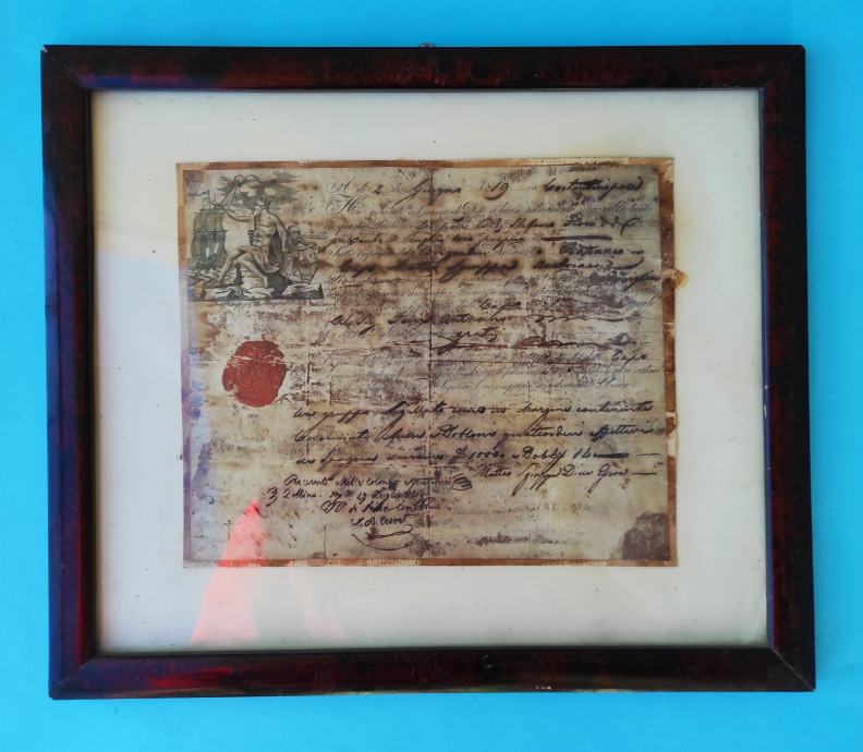 Stara brodska teretnica (uokvirena) iz davne 1819. godine - iz ostavštine čuvenih Orebićkih Kapetana.
