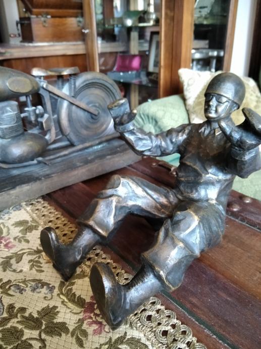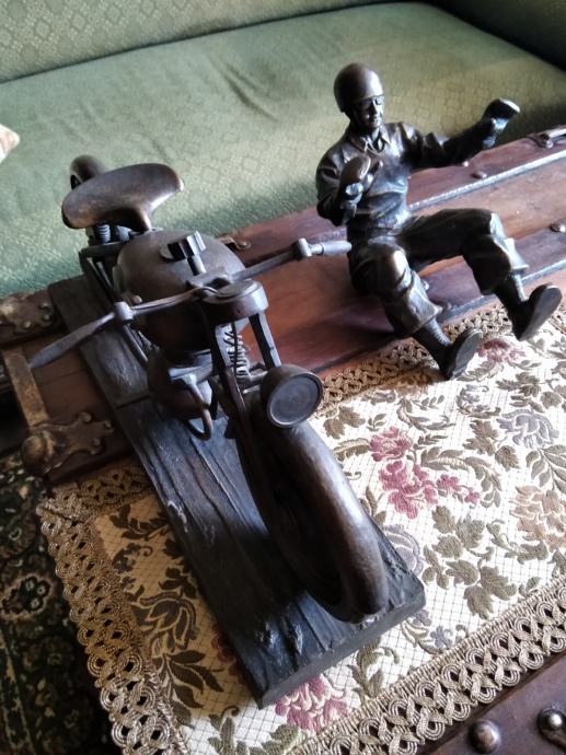 majstorski rad iz 30 tih god ...10 kg bronca....unikat motorista se odvaja od motora Dkw 350