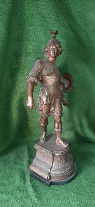 Brončana figura viteza ili rimskog vojnika. Odlično je uščuvana, nigdje udarena ili ogrebena, jedino nedostaje mač u ruci. Podnožje od crnog drveta. Vrlo je dekorativna i lijepa.