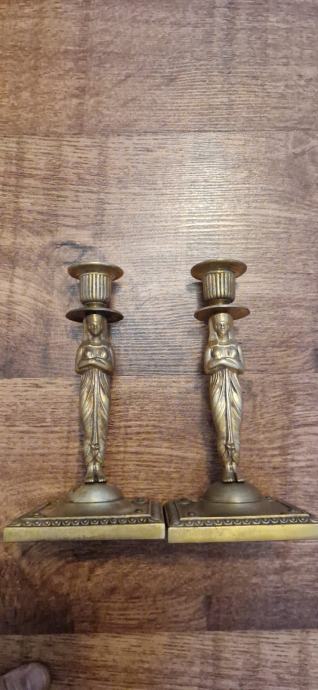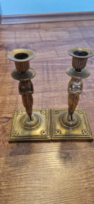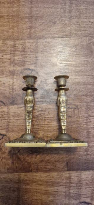 Prodajem izuzetno očuvan par antiknih figurativnih svijećnjaka izrađenih u prestižnom neoklasicističkom stilu "Retour d'Egypte" (Empire stil, druga polovica 19. stoljeća).