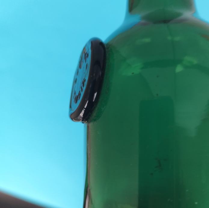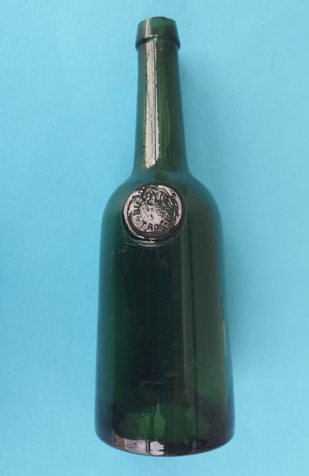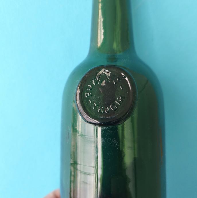 Samo pečat na boci "BUZOLIĆ - TROGIR" nije besprijekorno otisnut, vjerovatno se prilikom utiskivanja pečata unutar kalupa našlo malo šporkice.