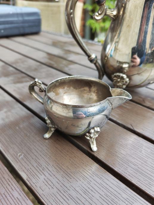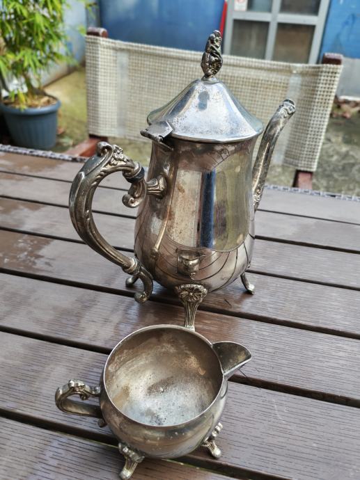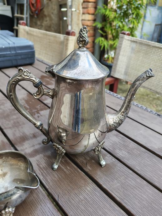 Cajnik i posuda, nije srebro.. Vjerovatno inox posrebreni, oboje u kompletu 40e Zagreb