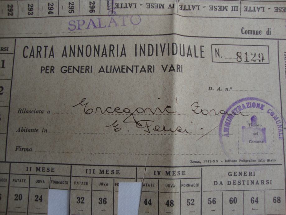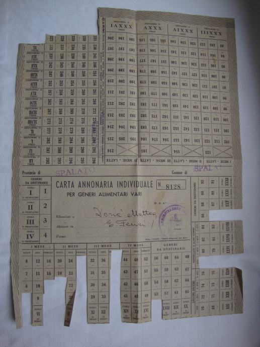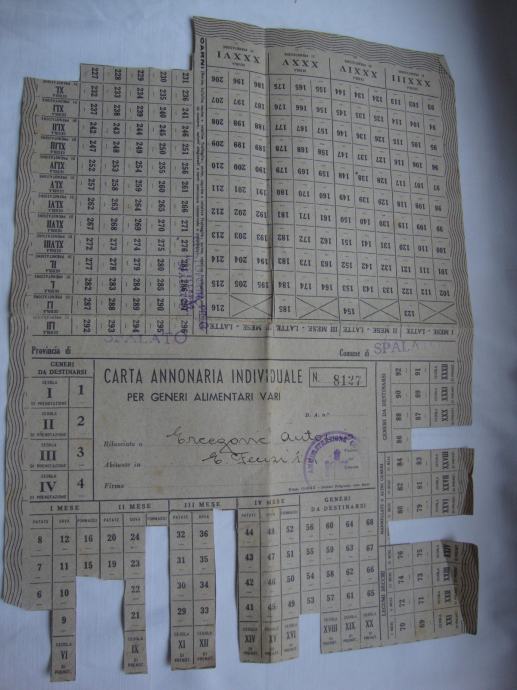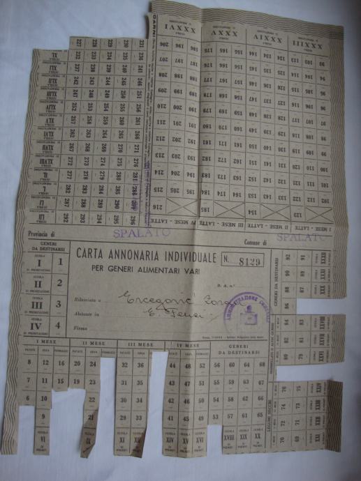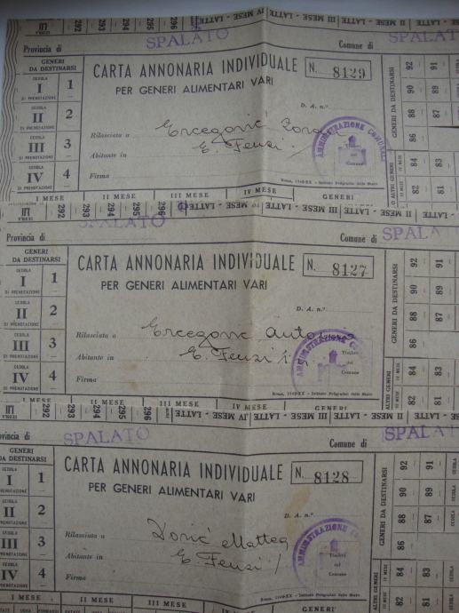 Carta annonaria individuale per generi alimentari vari iz 1942. godine -3 komada u odličnom stanju