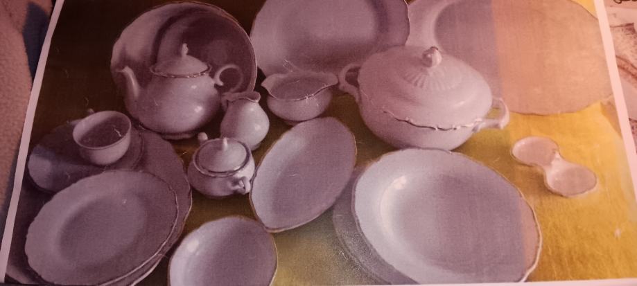 Kraljevski bijeli sa 24 k.pozlatom porculanski servis za 12 osoba. 87 komada sa žigom. Zvati do 18h.