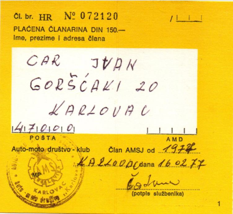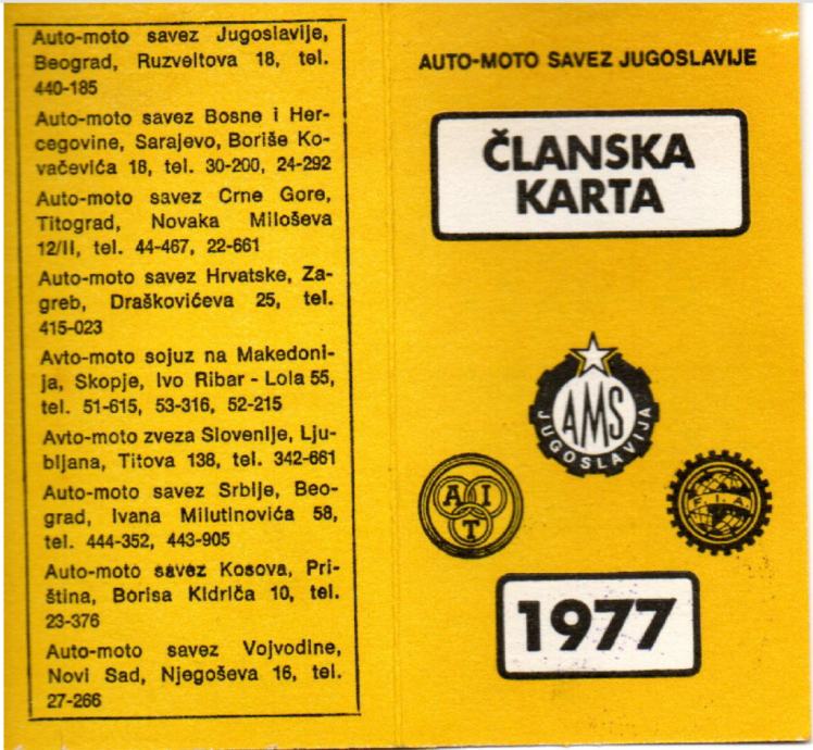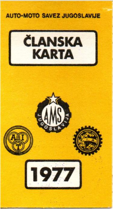 članska karta auto-moto saveza jugoslavije iz 1977 godine,
