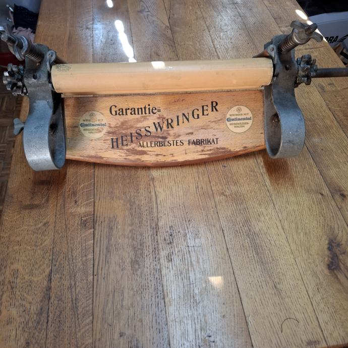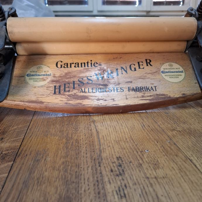 Ovo je starinski Continental Heiss Wringer, uređaj koji se nekada koristio za ručno cijeđenje rublja nakon pranja.
