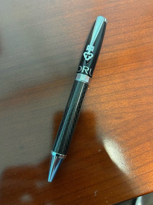 Olovka ima crni lakirani poklopac s ugraviranim amblemom ključa marke Corum.