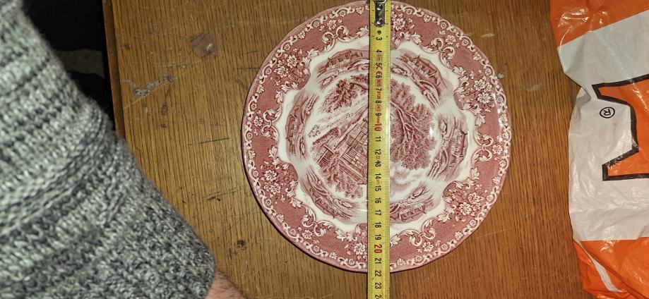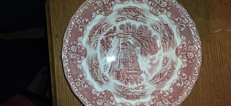 Ovo je u izvrsnom stanju, nema nikakvih oštećenja, pukotina, pukotina. Pink Red transferware. Ovo je tanjur sa strane ili tanjur za ručak.