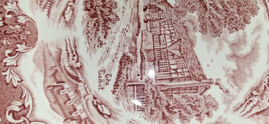 Tanjur je iz serije 'Engleske seoske gostionice'. U sredini je povijesna gostionica 'The Leather Bottle', au izbočini je 5x velika seoska kuća s mostom.