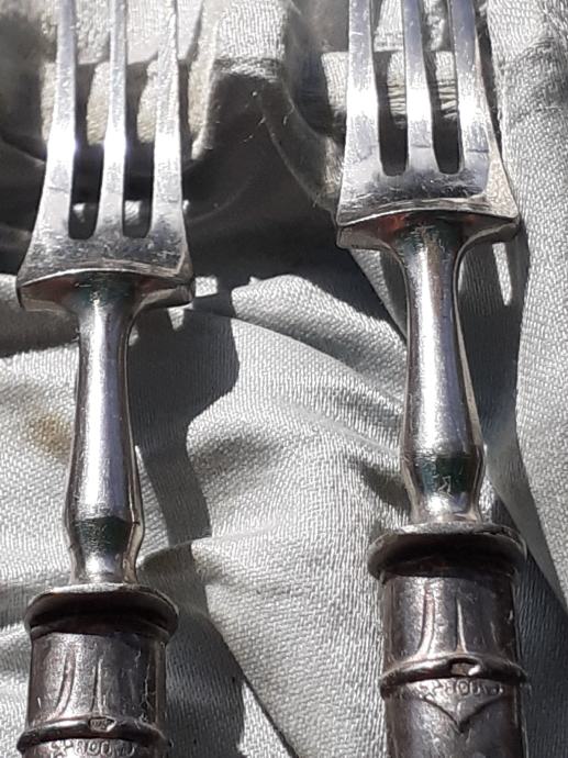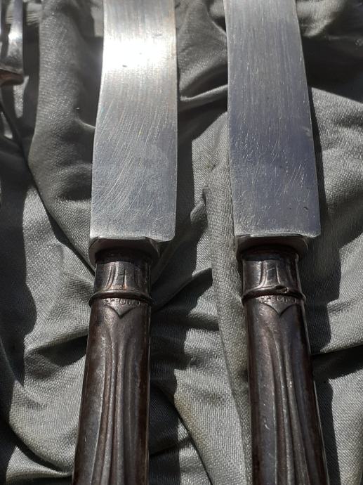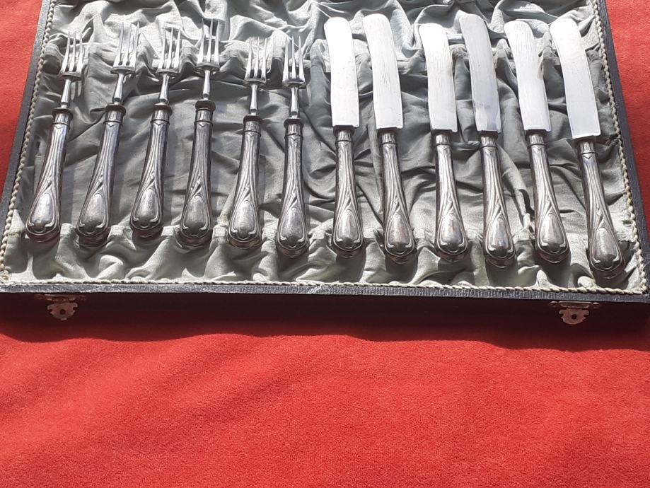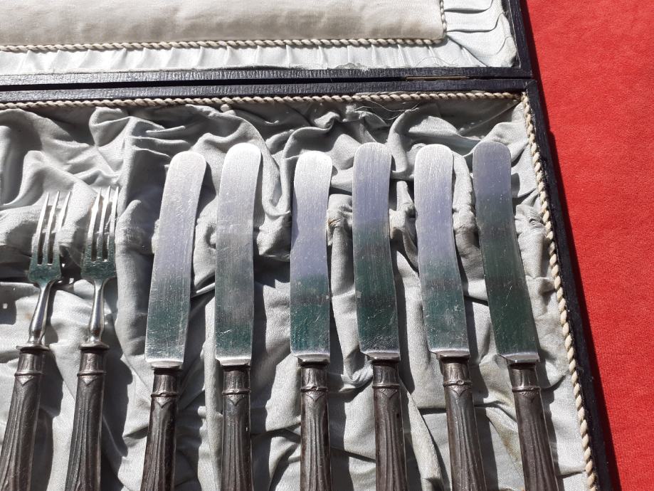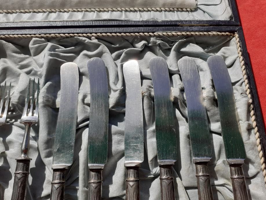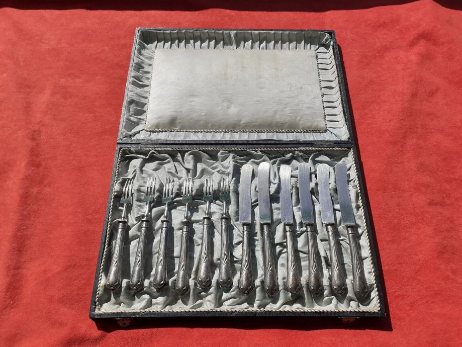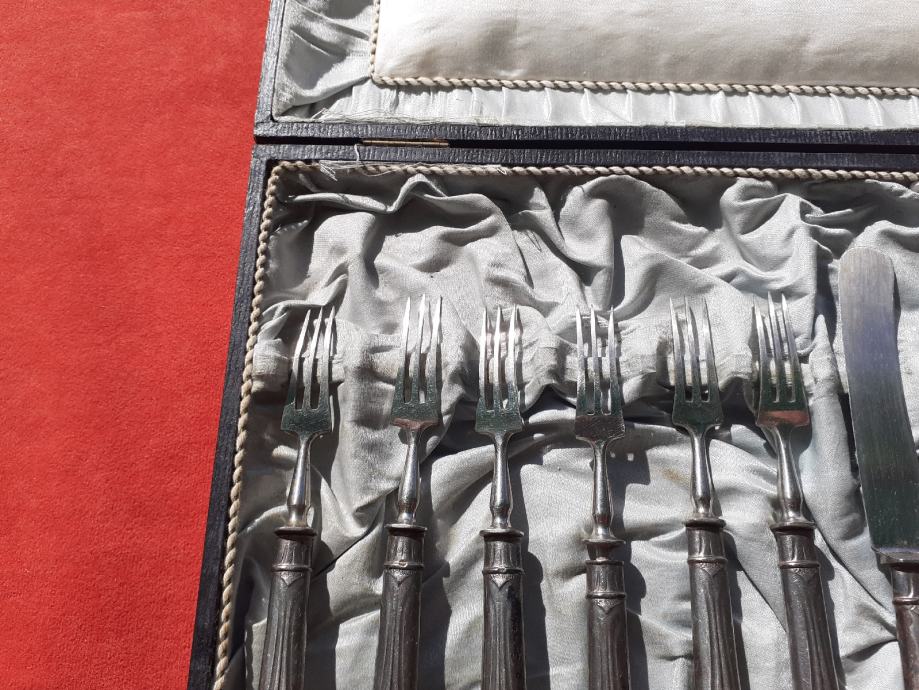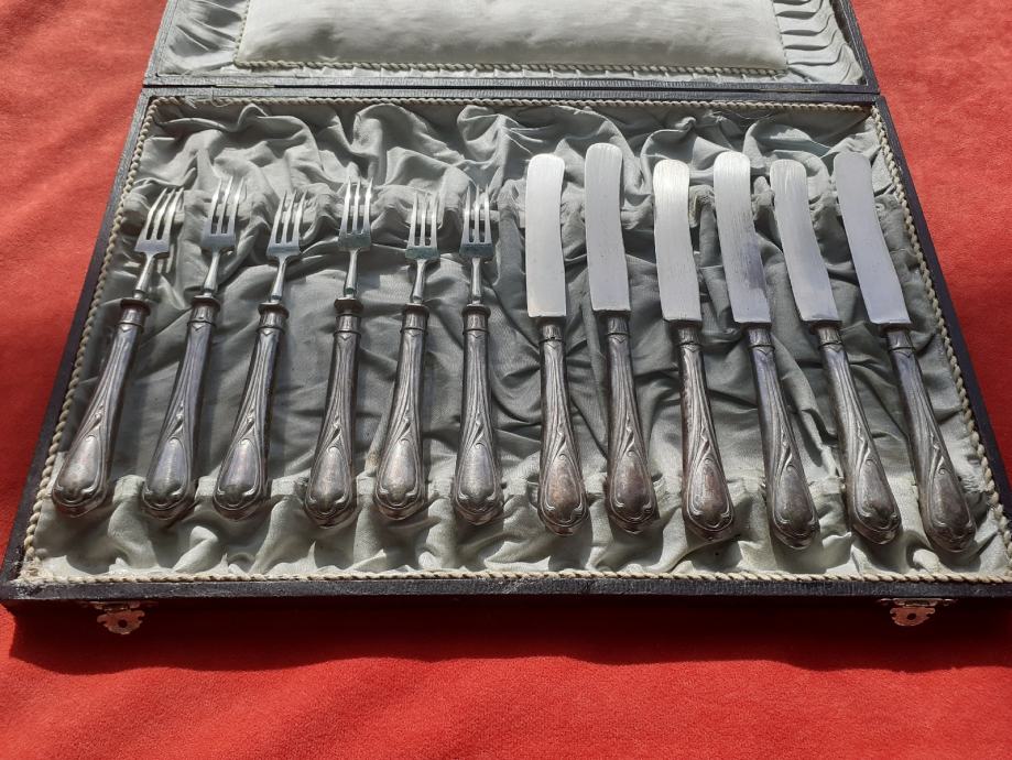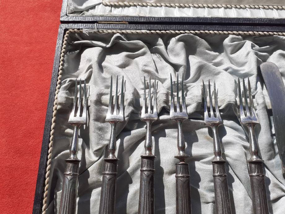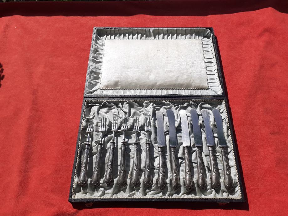 Prodaje se desertni beštek. Oplata (vanjski dio) rukohvata viljuška i noževa izrađena je najvjerojatnije od srebra čistoće 800 na kojoj se nalaze žigovi čistoće 800 te žigovi kruna i polumjesec. Također ima i žigove u obliku ukrštenih čekića što su moguće žigovi proizvođača. Prodavatelj naglašava da je vrlo moguće samo lim oplate rukohvata bešteka od srebra dok je unutrašnjost rukohvata od željeza i moguće od još drugog materijala jer rukohvat reagira na magnet što znači da ima u sebi željeza. Same viljuške i sječiva noževa su od željeza. Jedan od viljuška ima do pola napuknut jedan od tri boda. Kutija bešteka ima oštećenja unutrašnjosti u vidu razderotina tkanine, a izvana kutija ima oštećenja u vidu površinskih oguljotina materijala. Cijena bešteka je 130 eura. Mogućnost osobnog preuzimanja u Zadru. Kontakt broj mobitela 091 131 10 36.