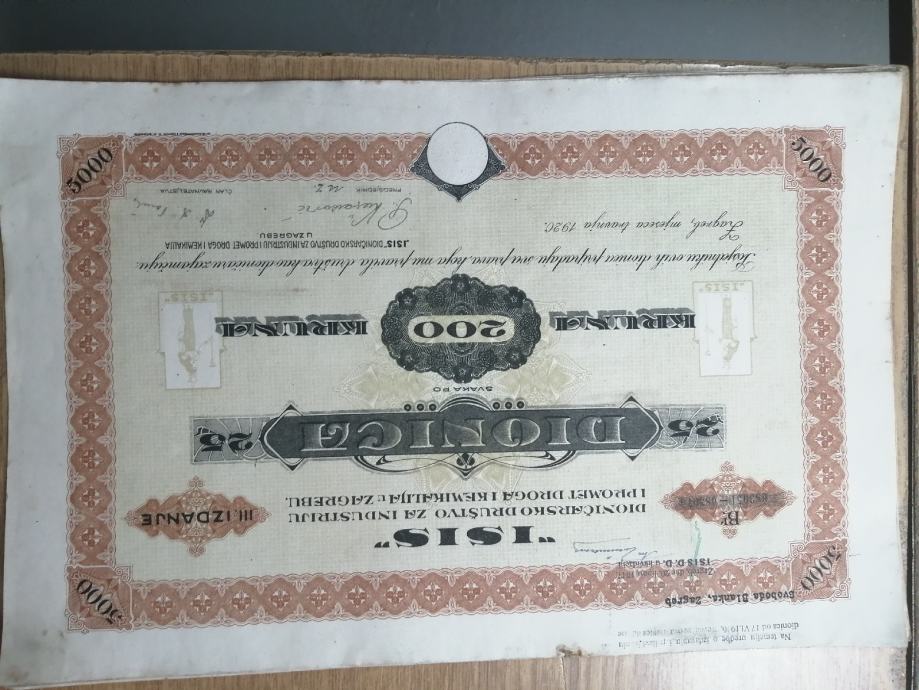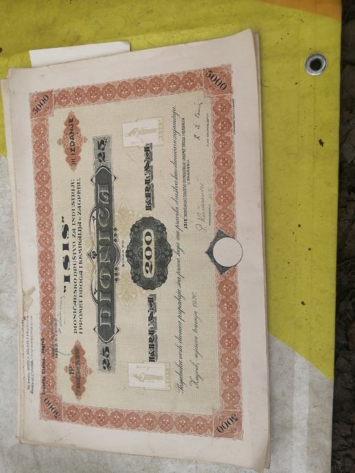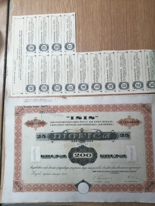 Dionice ISIS 200 kruna svaka, šest komada. 10 € komad ili šest komada 50€