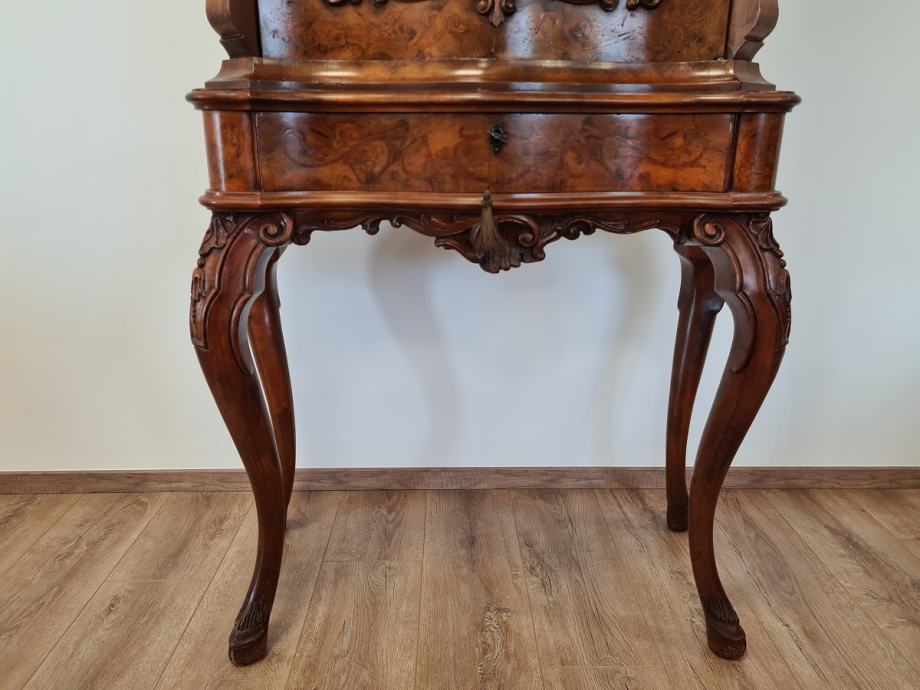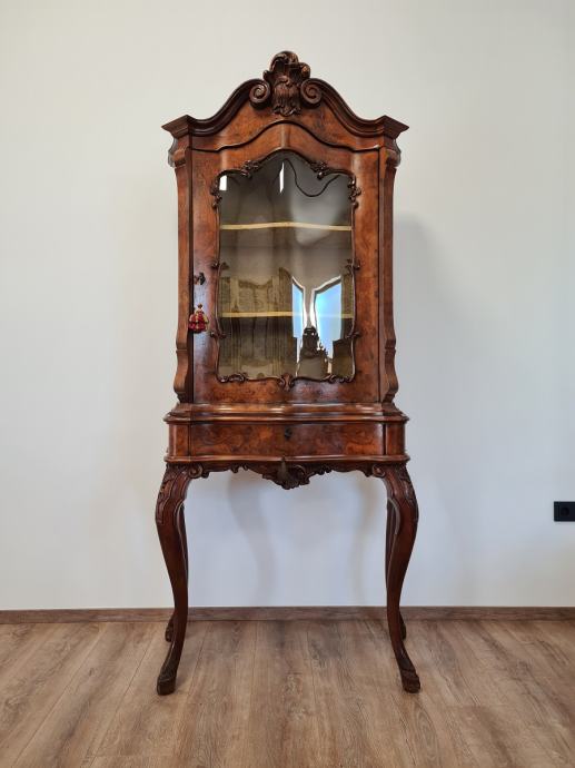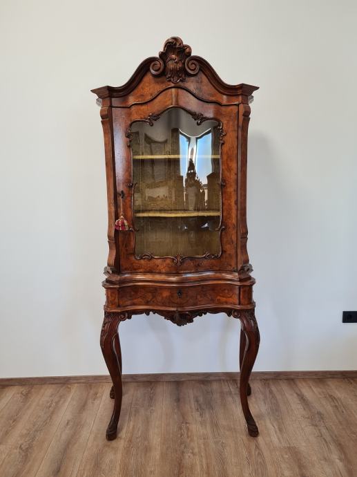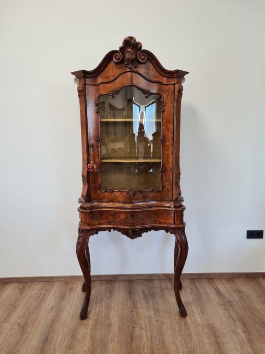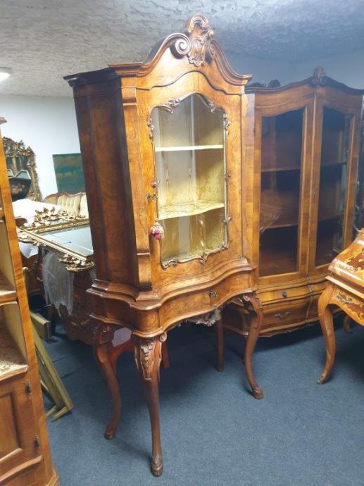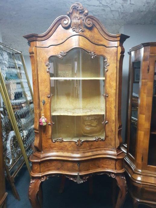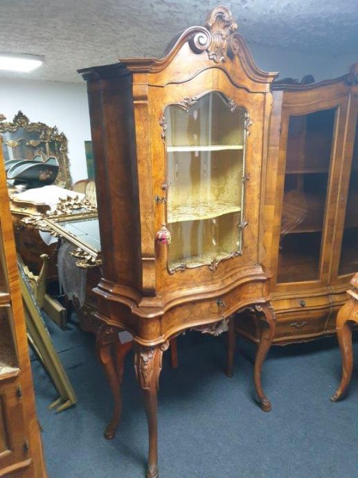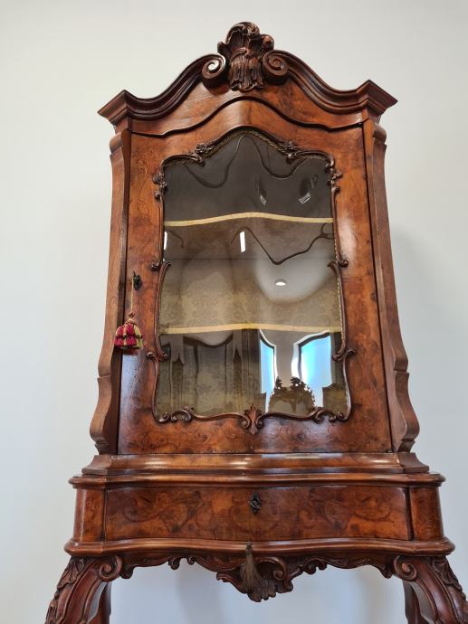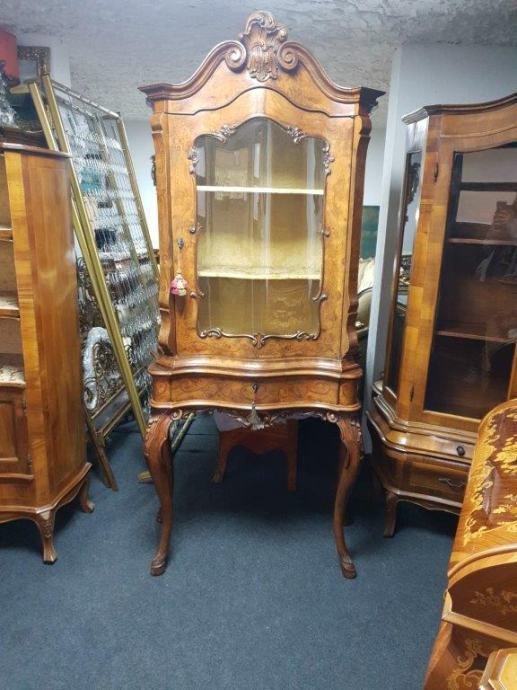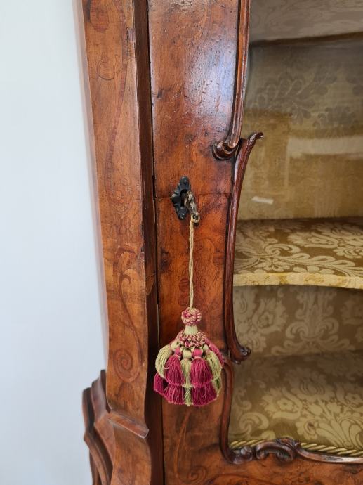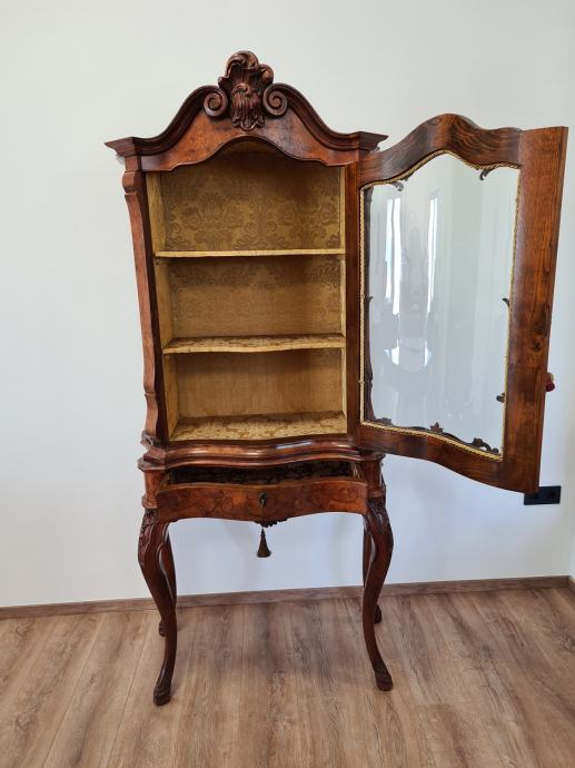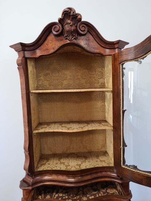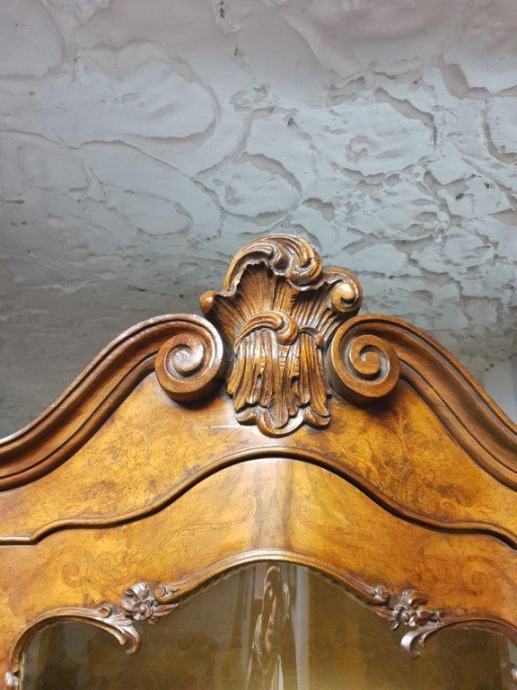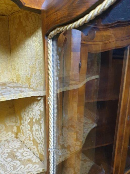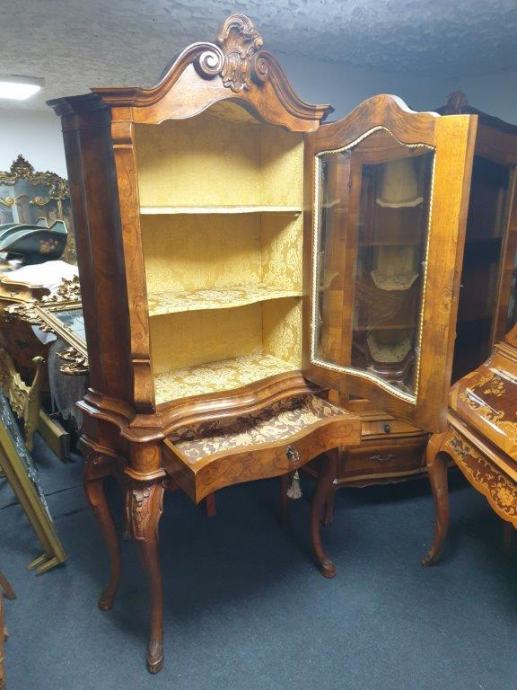Predivna, stara intarzirana barokna kristalijera. Rearitet na tržištu. U odličnom je stanju, iznutra štofirana.
