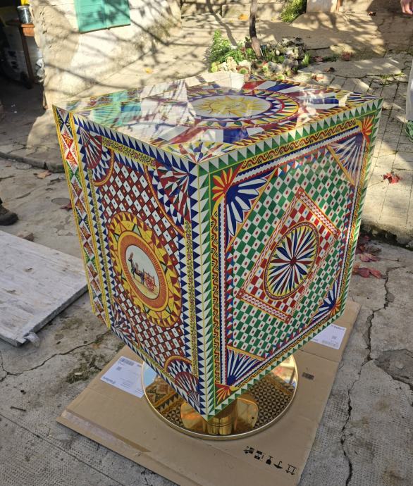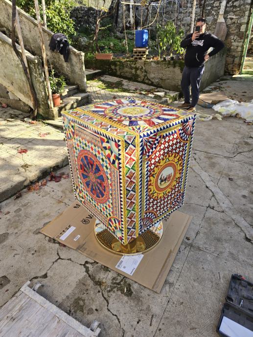 Na prodaju originalni Dolce & Gabbana Casa luksuzni kabinet, izrađen u prepoznatljivom sicilijanskom carretto stilu, s bogatim ručno oslikanim motivima, karakterističnim za estetiku kuće Dolce & Gabbana.