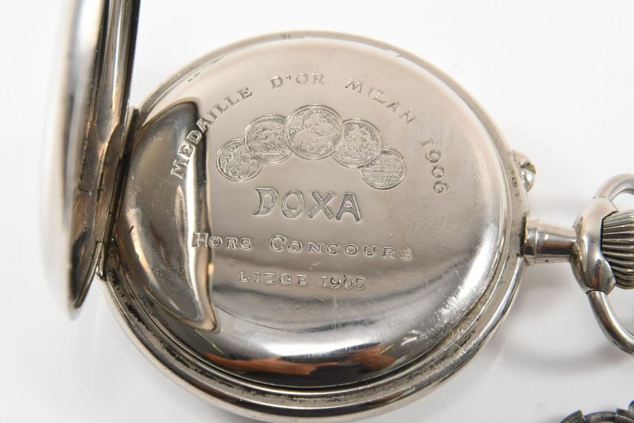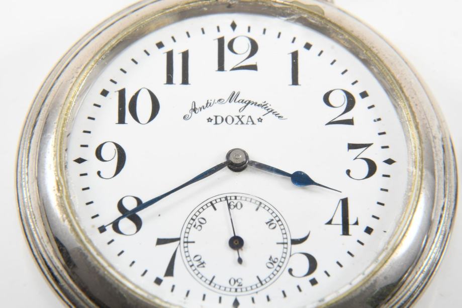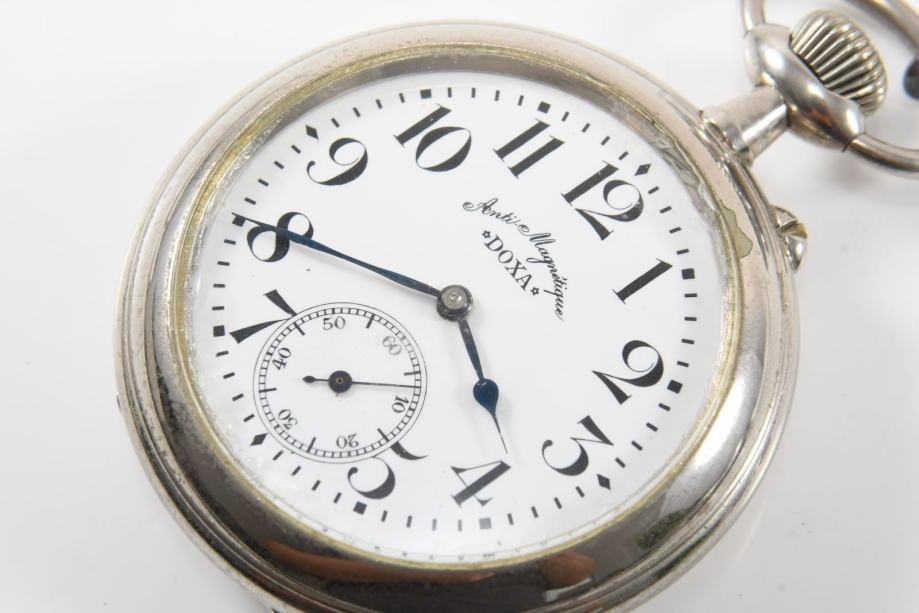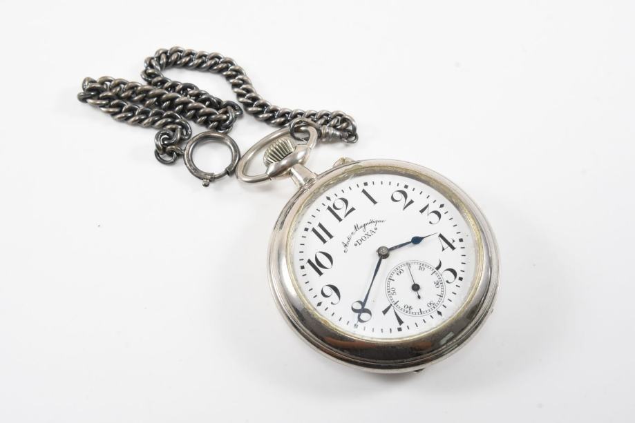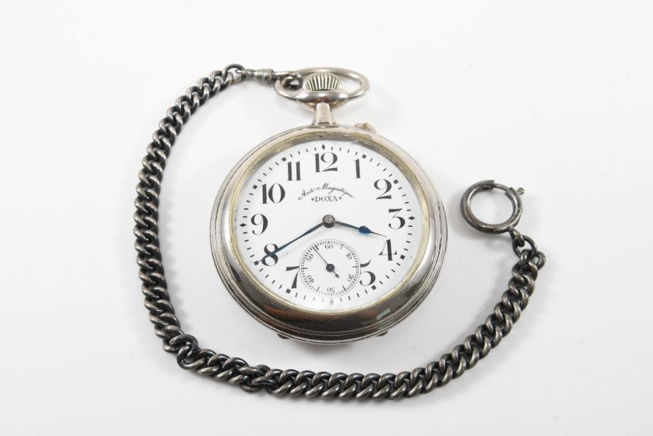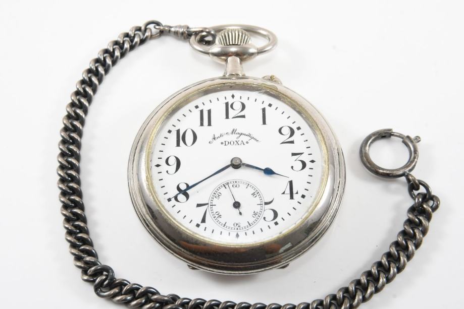 Željeznički Doxa sat, ispravan i u vrlo dobrom stanju. Promjer sata je 68 mm bez krunice. Uz sat ide i lanac.