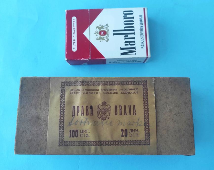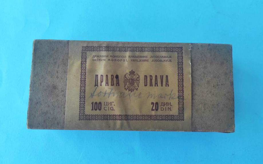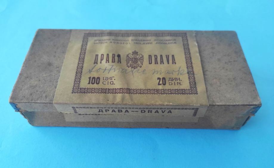 DRAVA - veća kutija za cigarete (od tvrdog papira) - Državni monopol Kraljevine Jugoslavije.