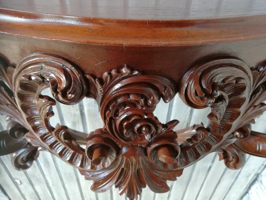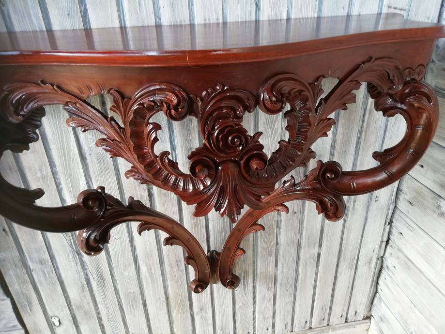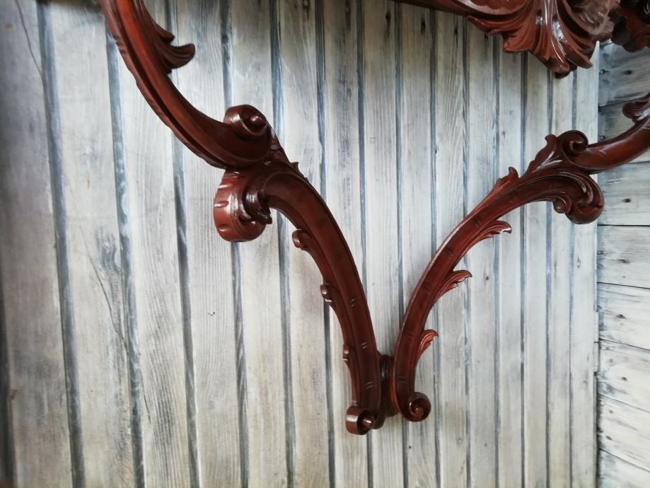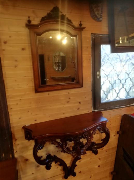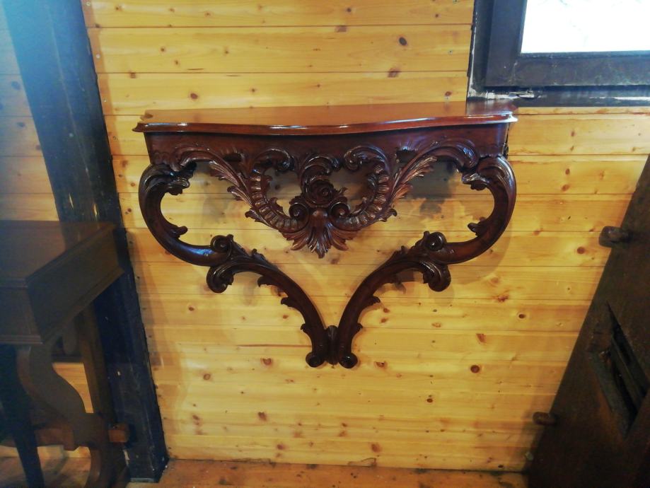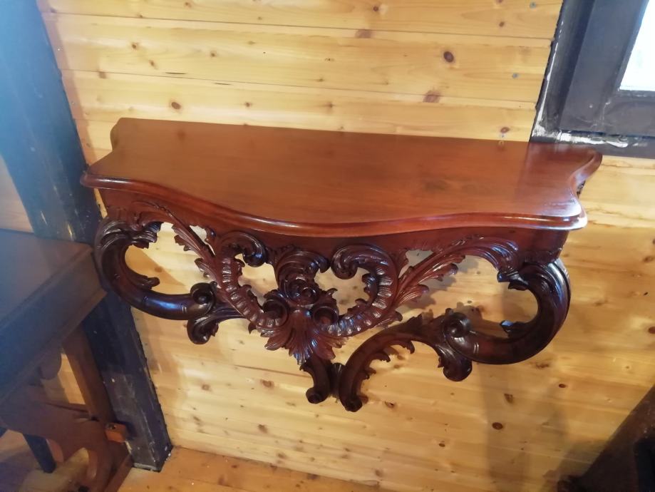 Predivna drvena konzola, rezbarena i restaurirana. Duzina 81 cm i visina 66 cm. Cijena konzole je 240 eura.