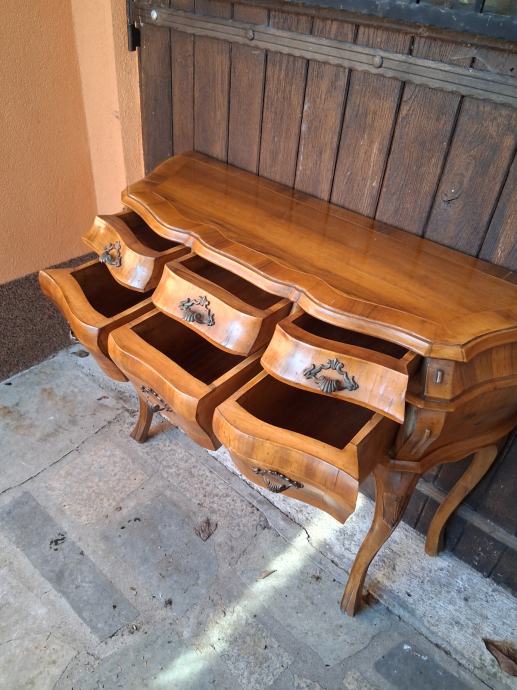Prekrasna drvena konzola sa 6 ladica. Dimenzije: duzina 100 cm, dubina 37 i visina 79 cm.