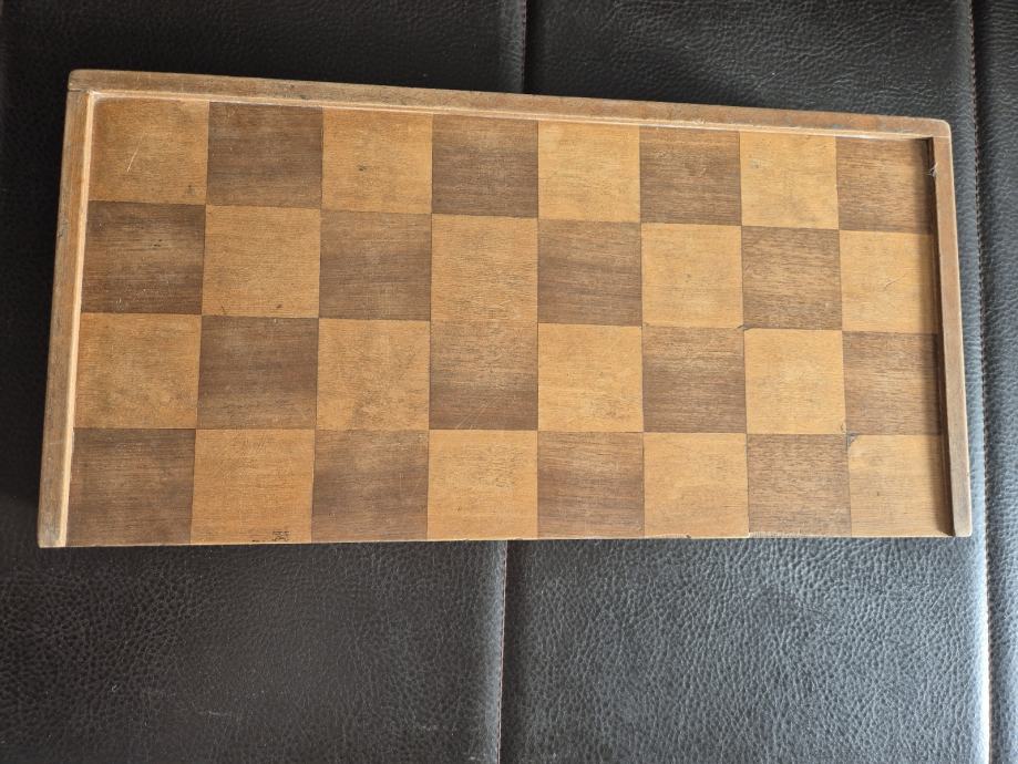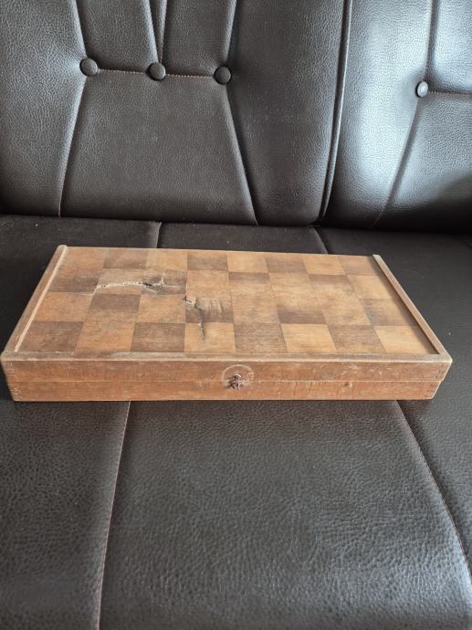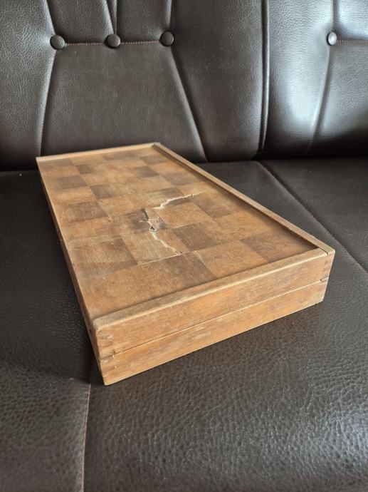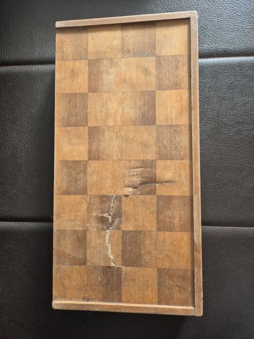 Drvena šah ploca dimenzija 41x41cm, ostecena, ali ispravna, moze se koristiti.