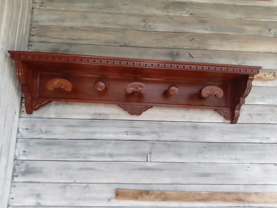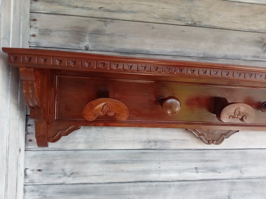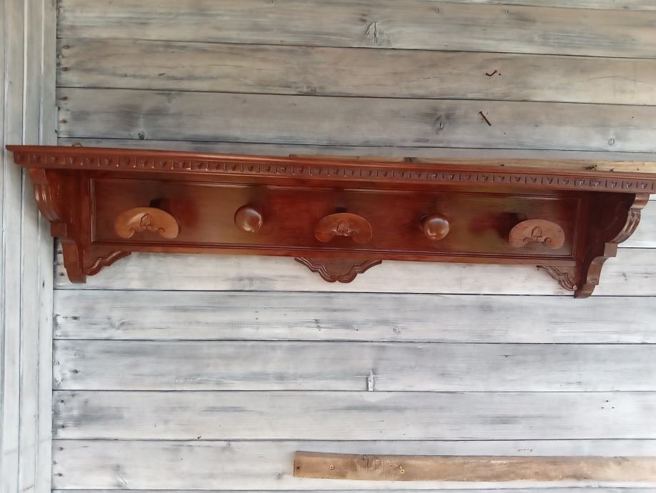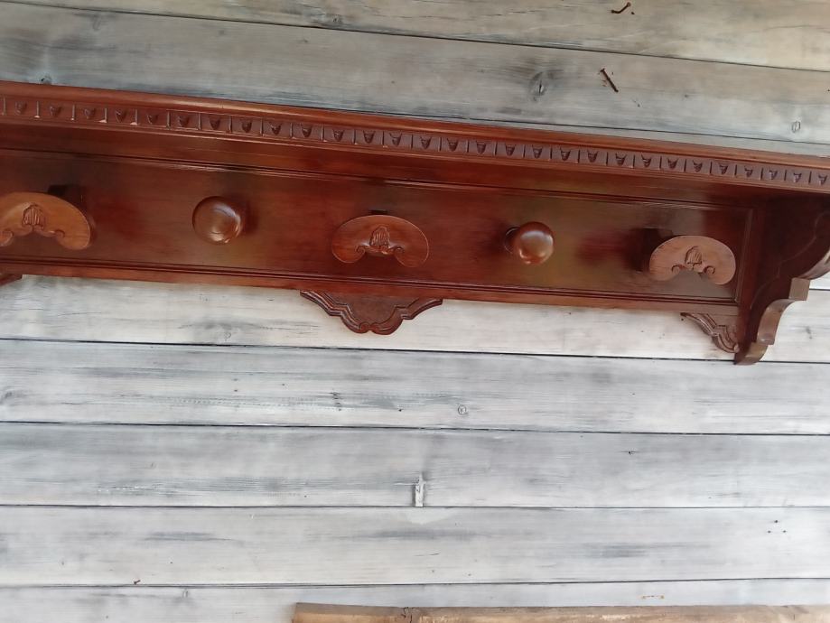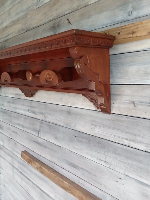 Drvena vjesalica za zid sa pet kukica, duzine 120 cm.