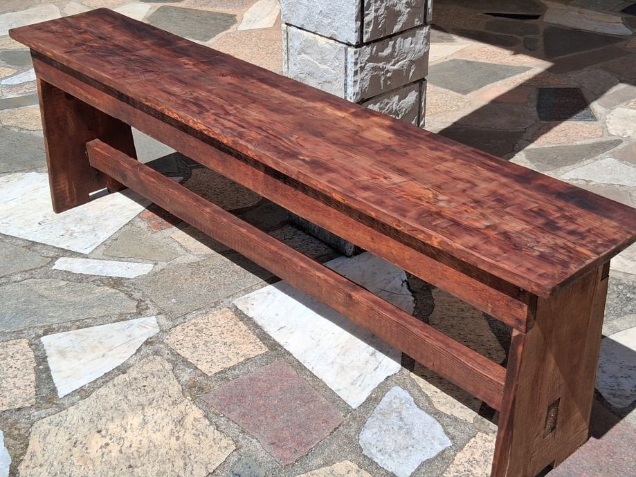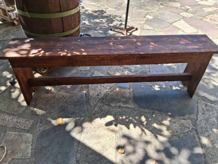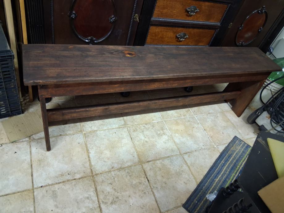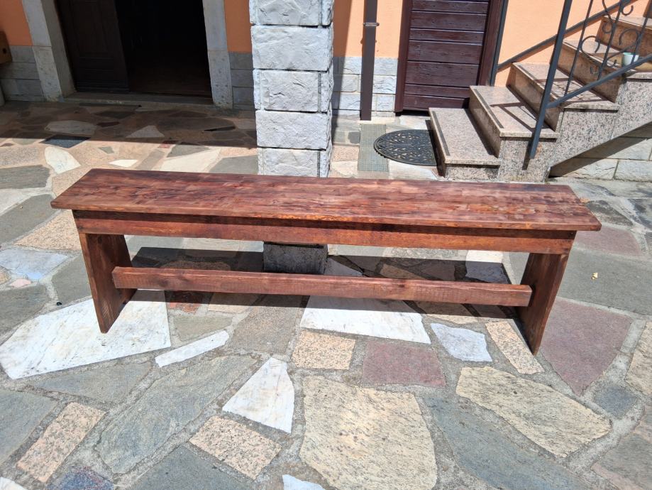 Dvije velike drvene klupe i jedna manja, čvrste i stabilne. Dimenzije velikih klupa 168 cm, visina 53 i dubina 29 cm, a manja klupa duzine 80 cm, dubina 25 i visina 50 cm. Cijena jedne velike klupe je 110 eura, a cijena male klupe 50 eura.