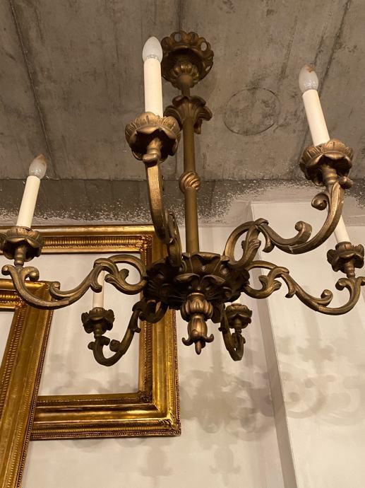Drveni pozlaceni luster u vrlo dobrom stanju sa prekrasnim rezbarijama i tokarijama.