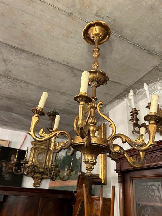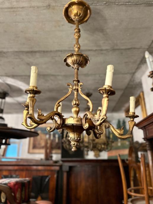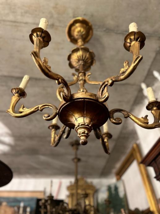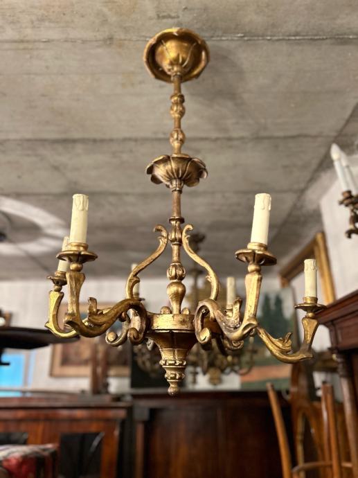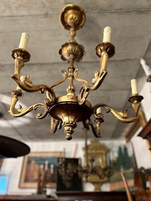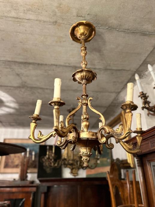 Drveni pozlaceni luster u vrlo dobrom i kompletnom stanju.