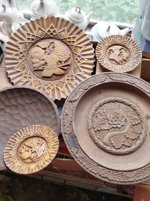 Ukrasi, vinova loza, jedna velika promjera 30cm, dvije iste male 12cm, tavica i tanjur sa cvijetom.
