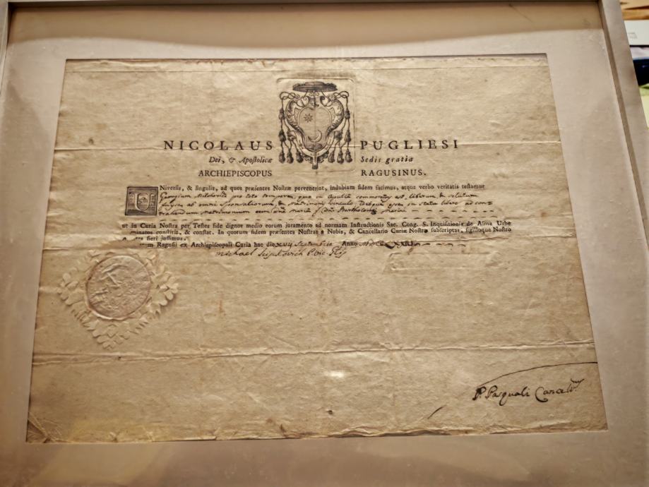 DUBROVAČKA REPUBLIKA / NADBISKUP NIKOLA PUGLIESI / ORIGINAL IZ 1773. g