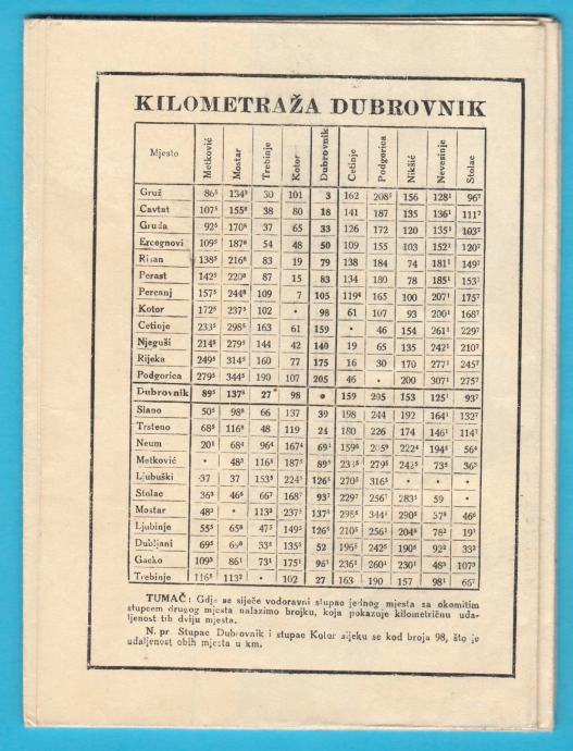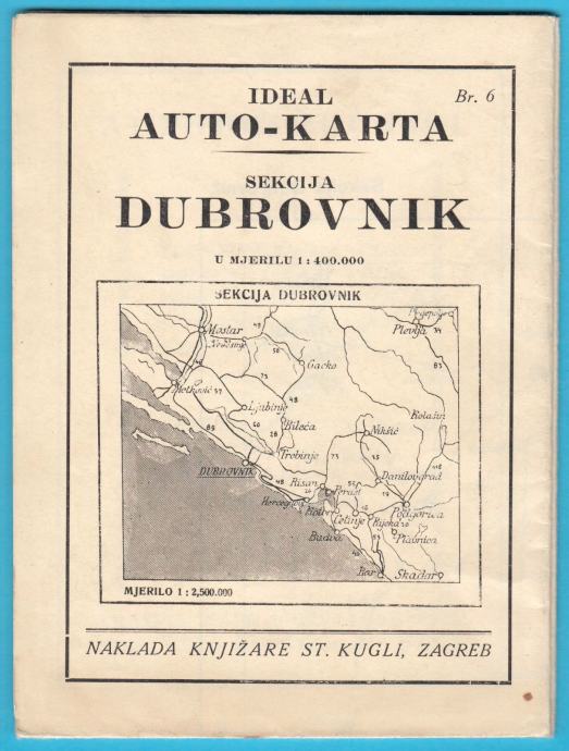 DUBROVNIK - KRALJEVINA JUGOSLAVIJA stara predratna auto karta *Odlična