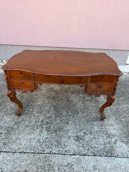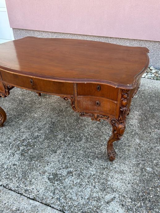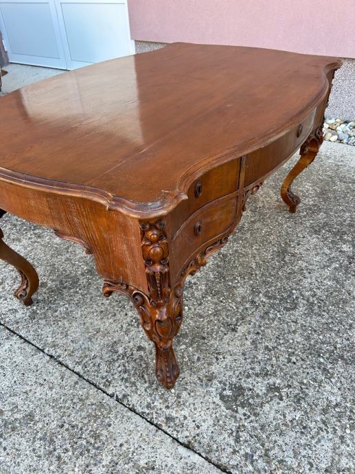 Veliki dvostrani neobarokni radni stol iz druge polovice 19 stoljeca u vrlo dobrom stanju.