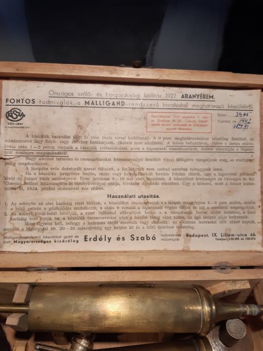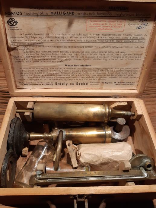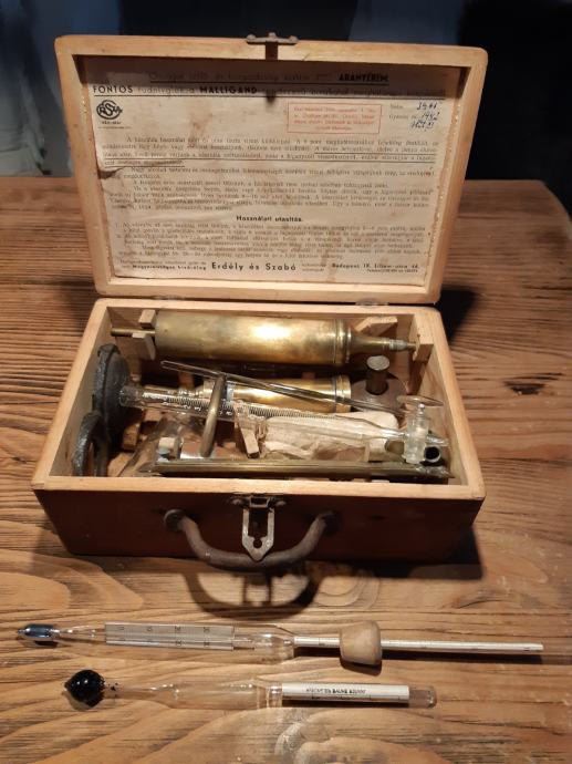 Ebulioskop, za merjenje alk.u vinu, l.1942, orig.embalaža, i orig.plomba.